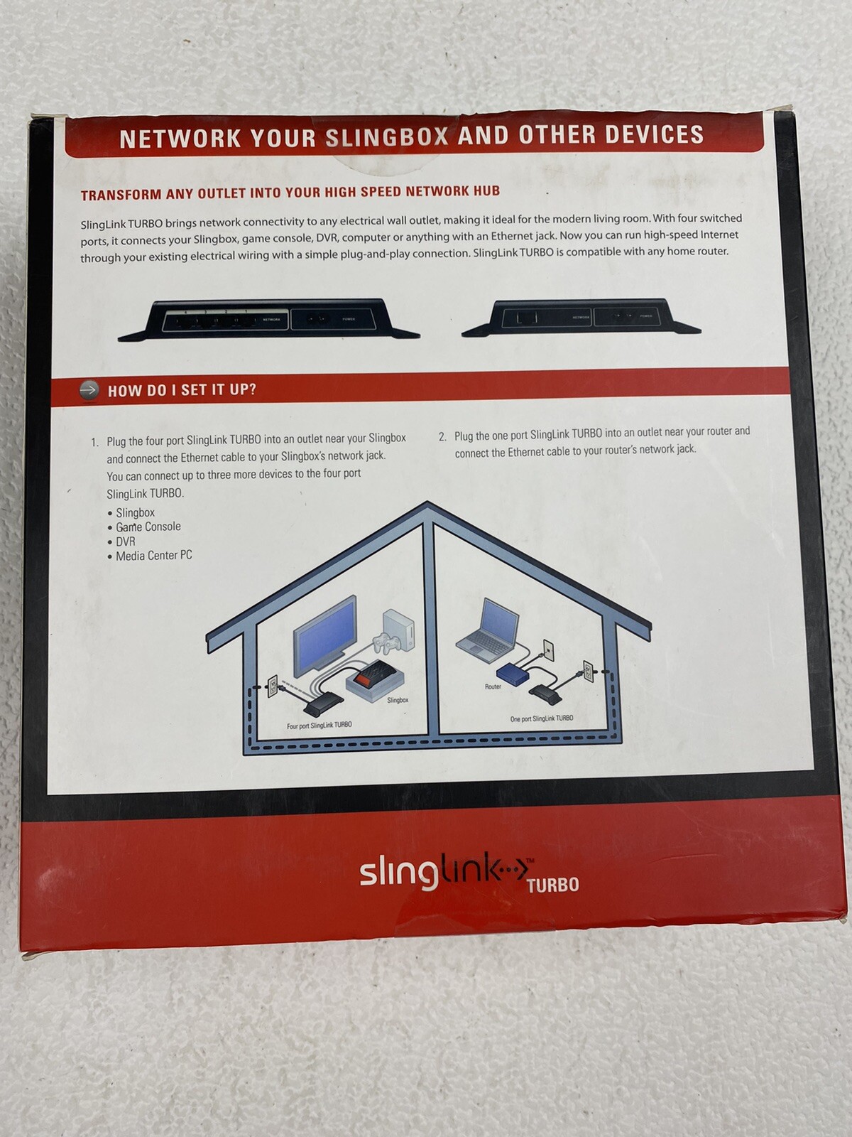 как выглядит Sling Media SlingLink Turbo Powerline Kit 4 Port SL200-100 Sealed New фото