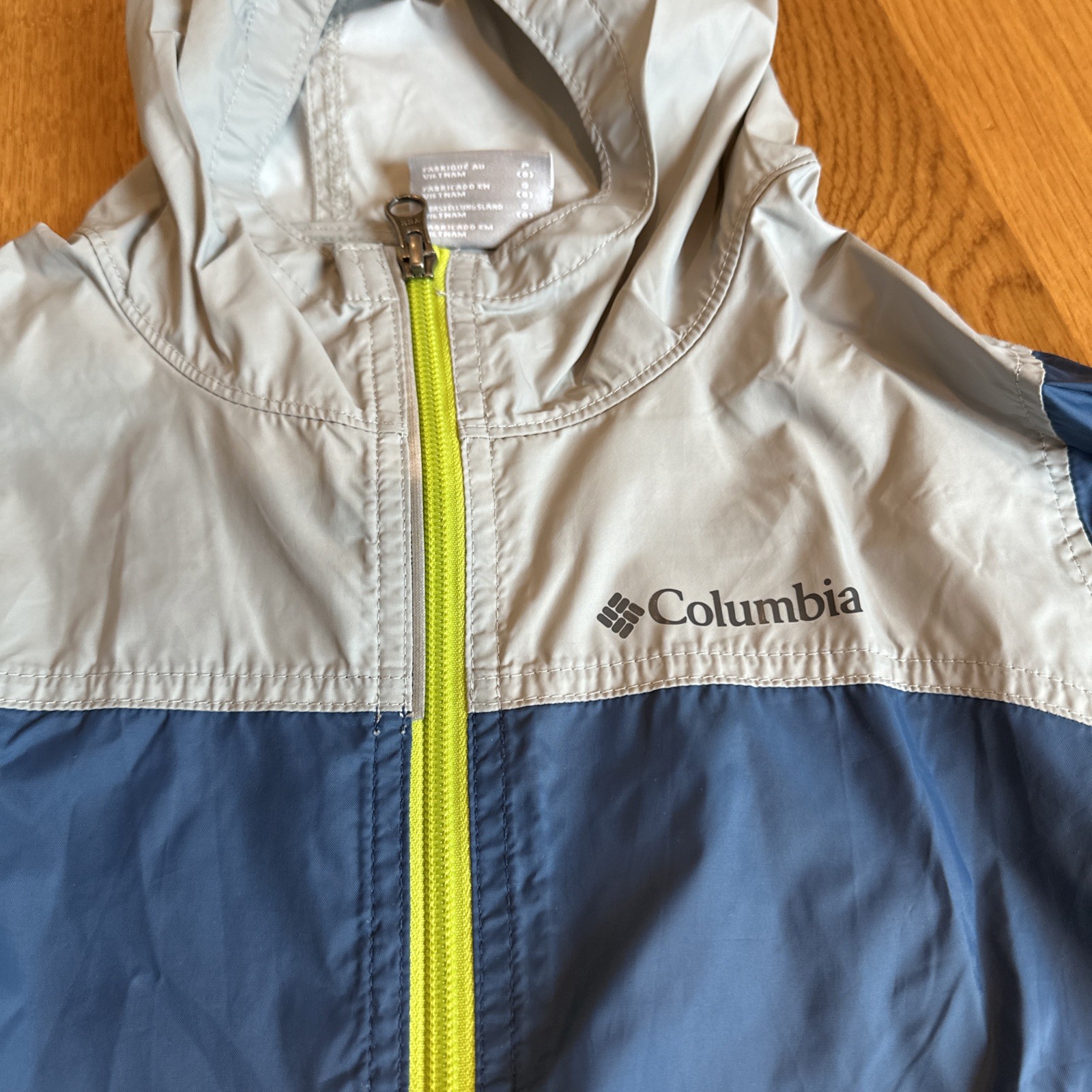 Columbia Boys Sz 8 S Light Weight Windbreaker Hooded Jacket Blue Gray No Lining