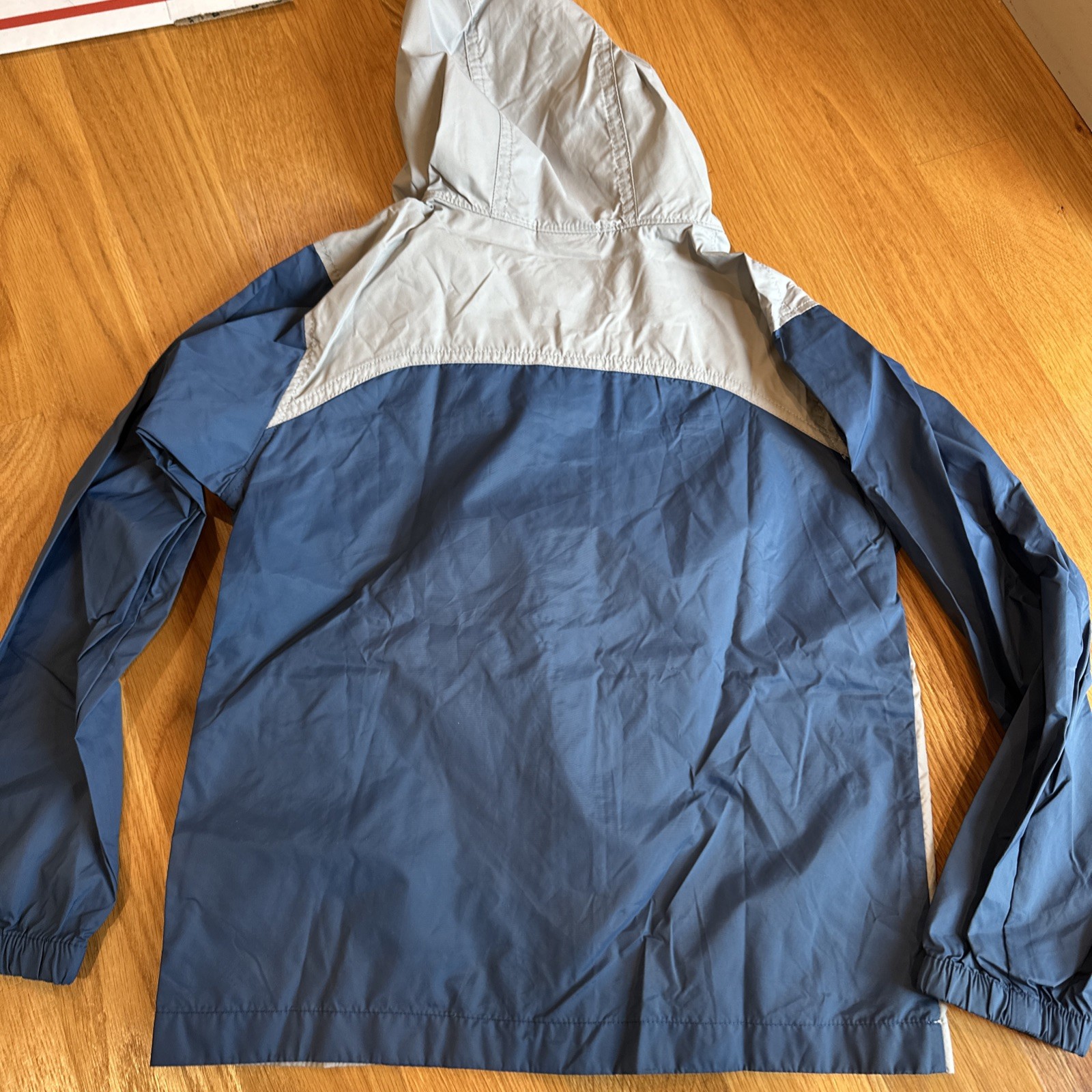 как выглядит Columbia Boys Sz 8 S Light Weight Windbreaker Hooded Jacket Blue Gray No Lining фото