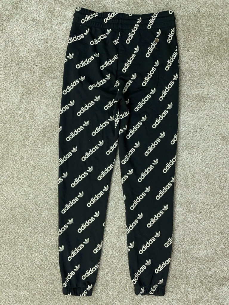 как выглядит Adidas Originals Sweatpants Womens Small Black Mono TP Track Trefoil All Over фото