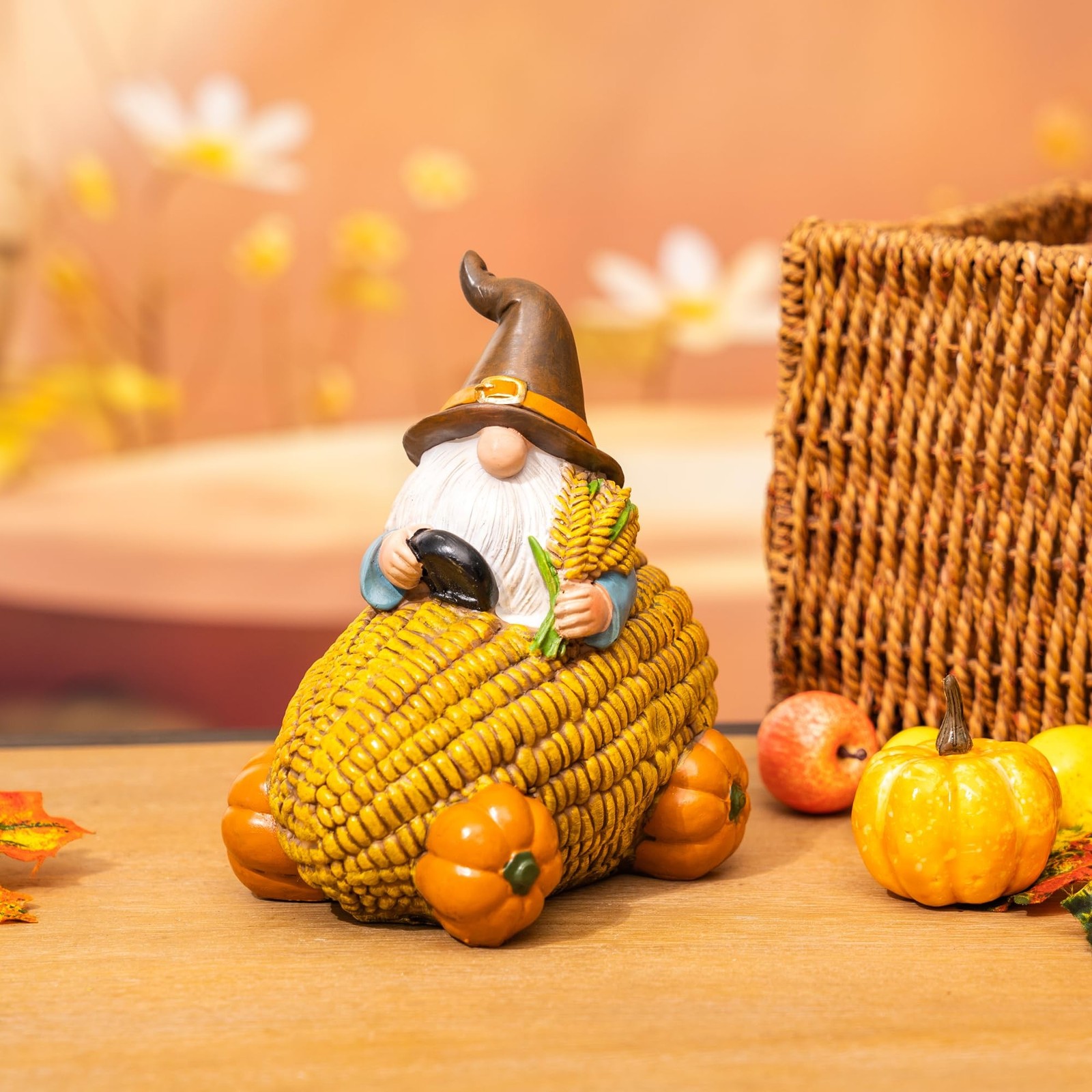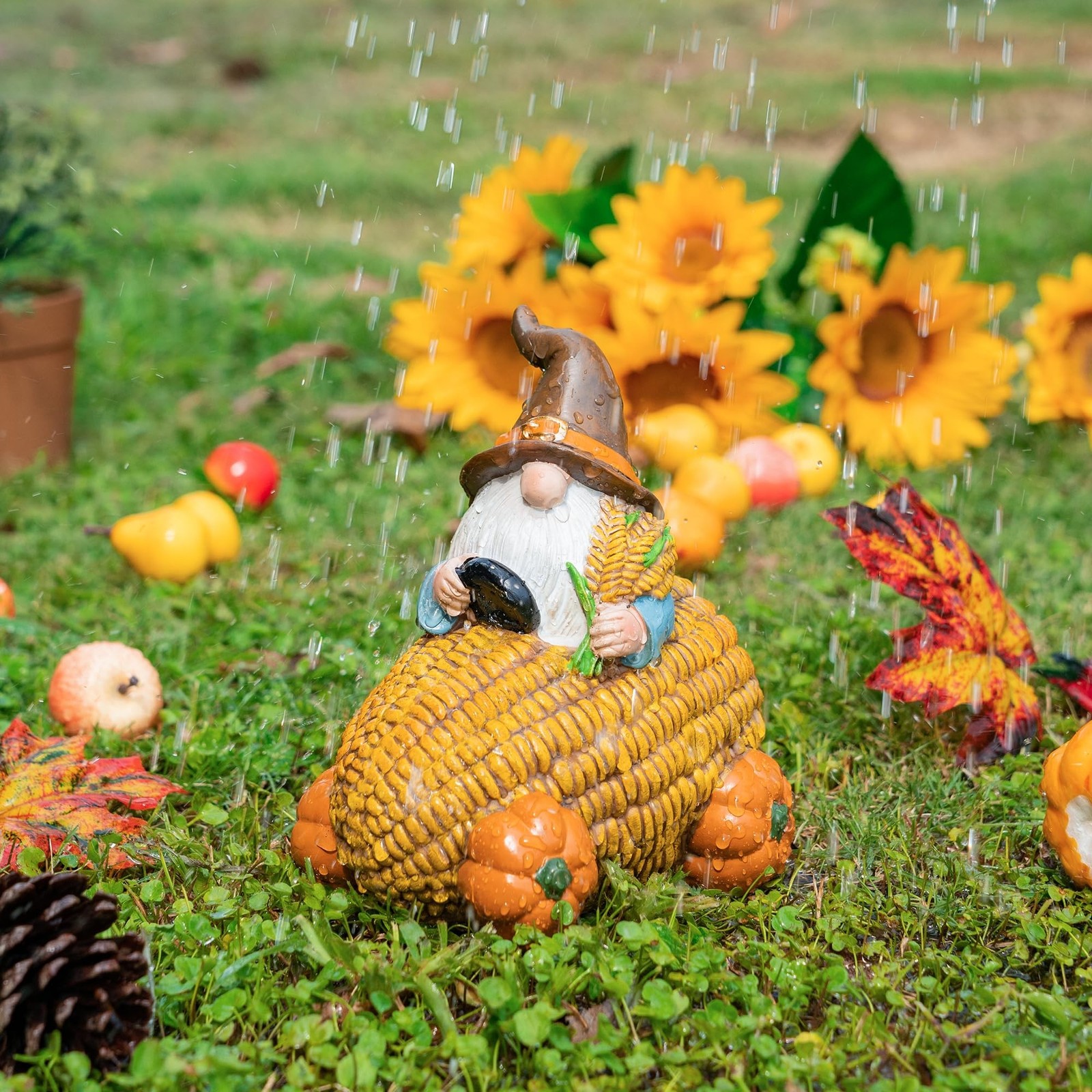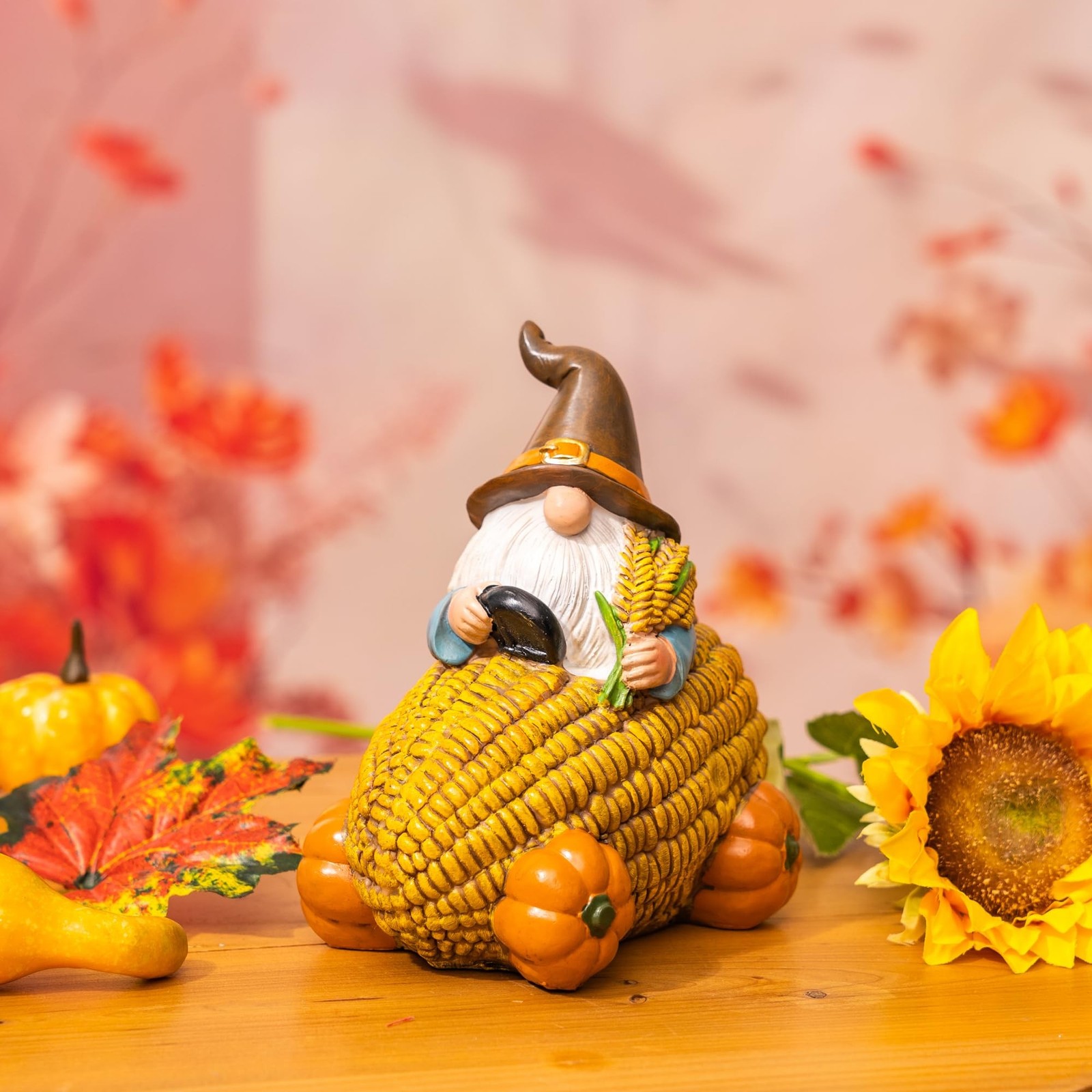 TZSSP Autumn Resin Gnome Corn Car with Happy Fall Thanksgiving Pump... Fast Ship