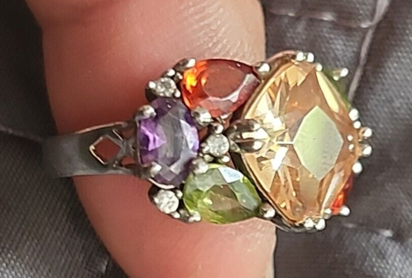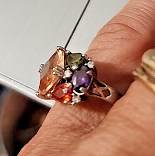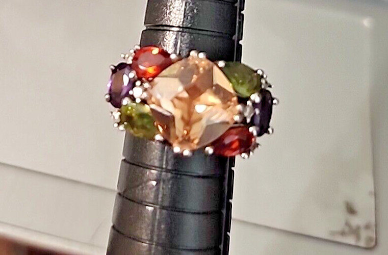 как выглядит .925 STERLING SILVER MEXICO MULTI STONE WOMANS RING SIZE 5 3/4 to 6 фото