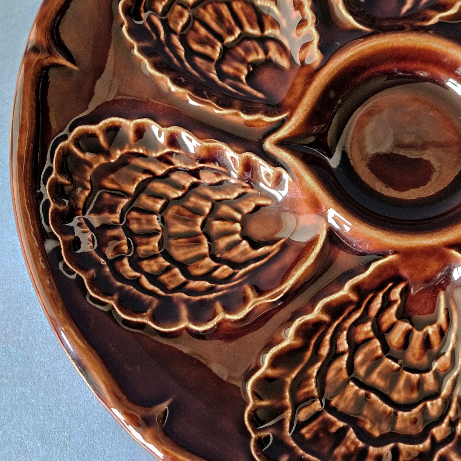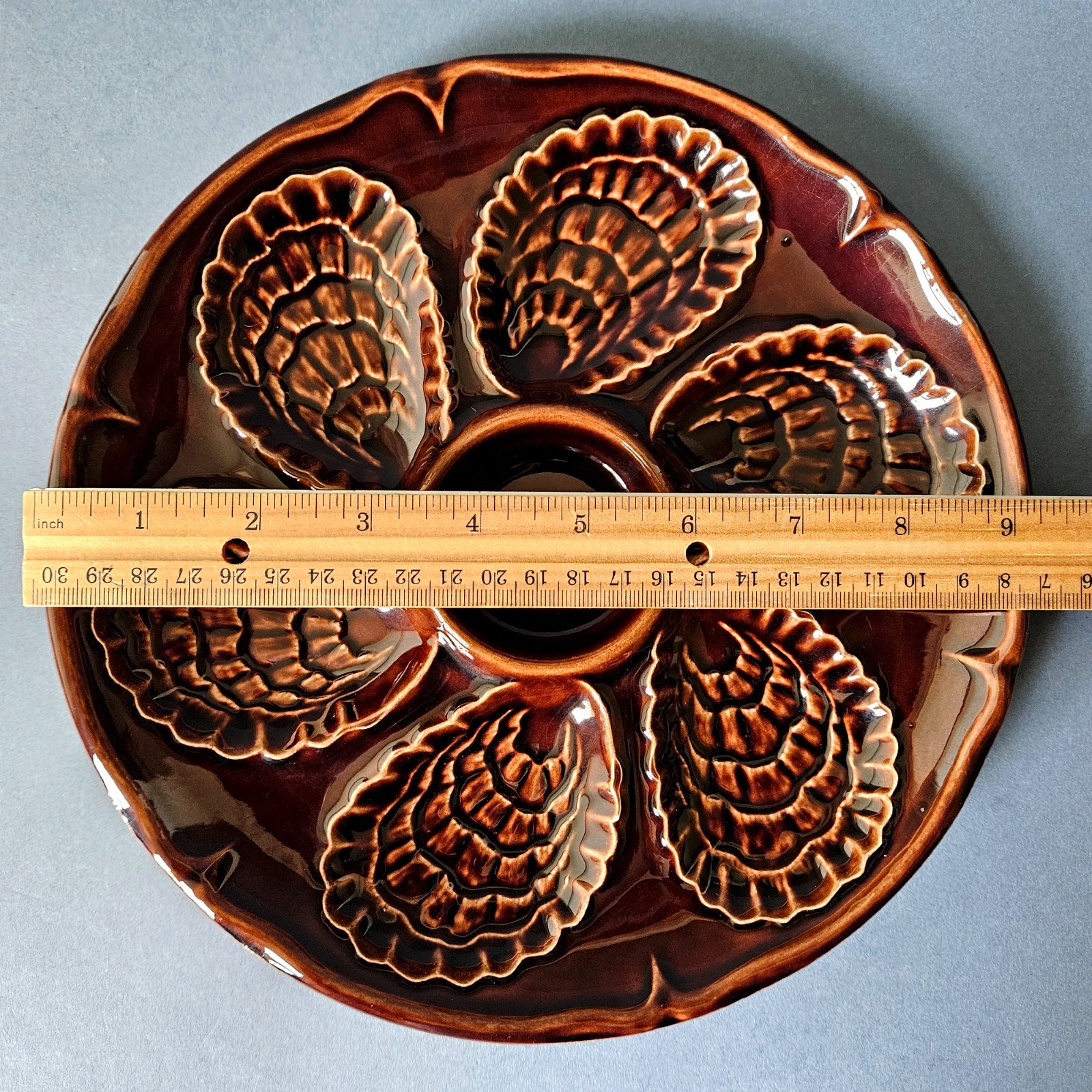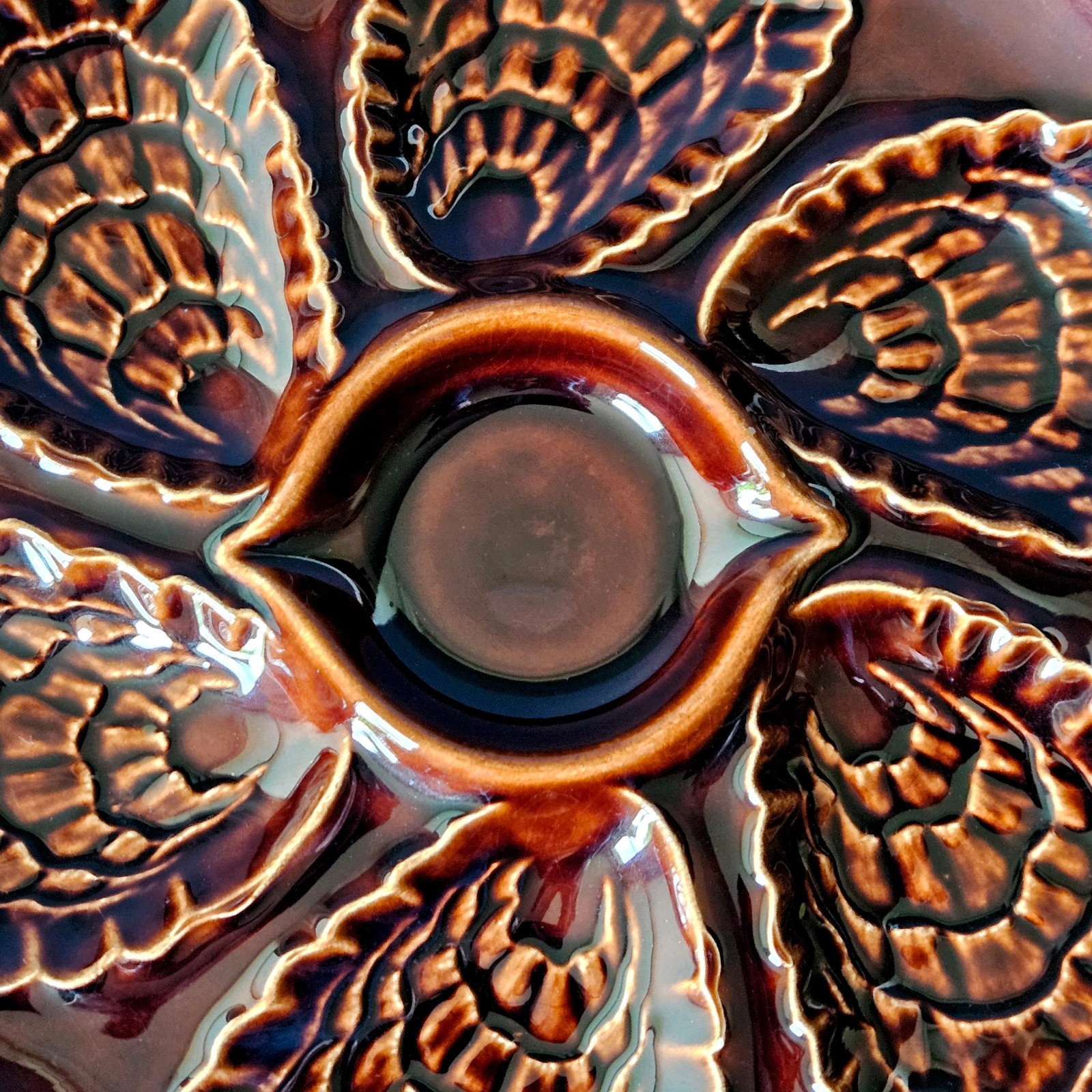 как выглядит Vintage France Dark Brown Majolica French Oyster Plate фото