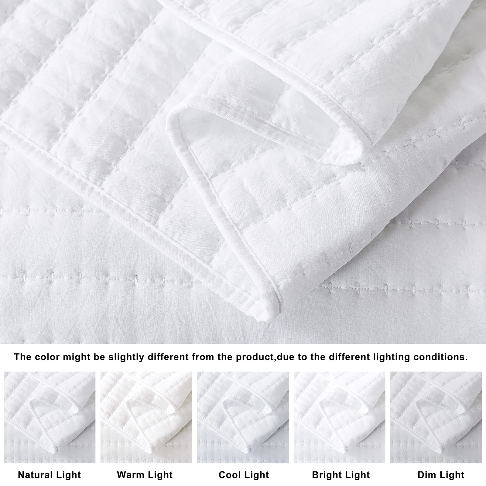 White Queen Size Quilt Bedding Sets with Pillow Shams Full Lightweight Soft Bed