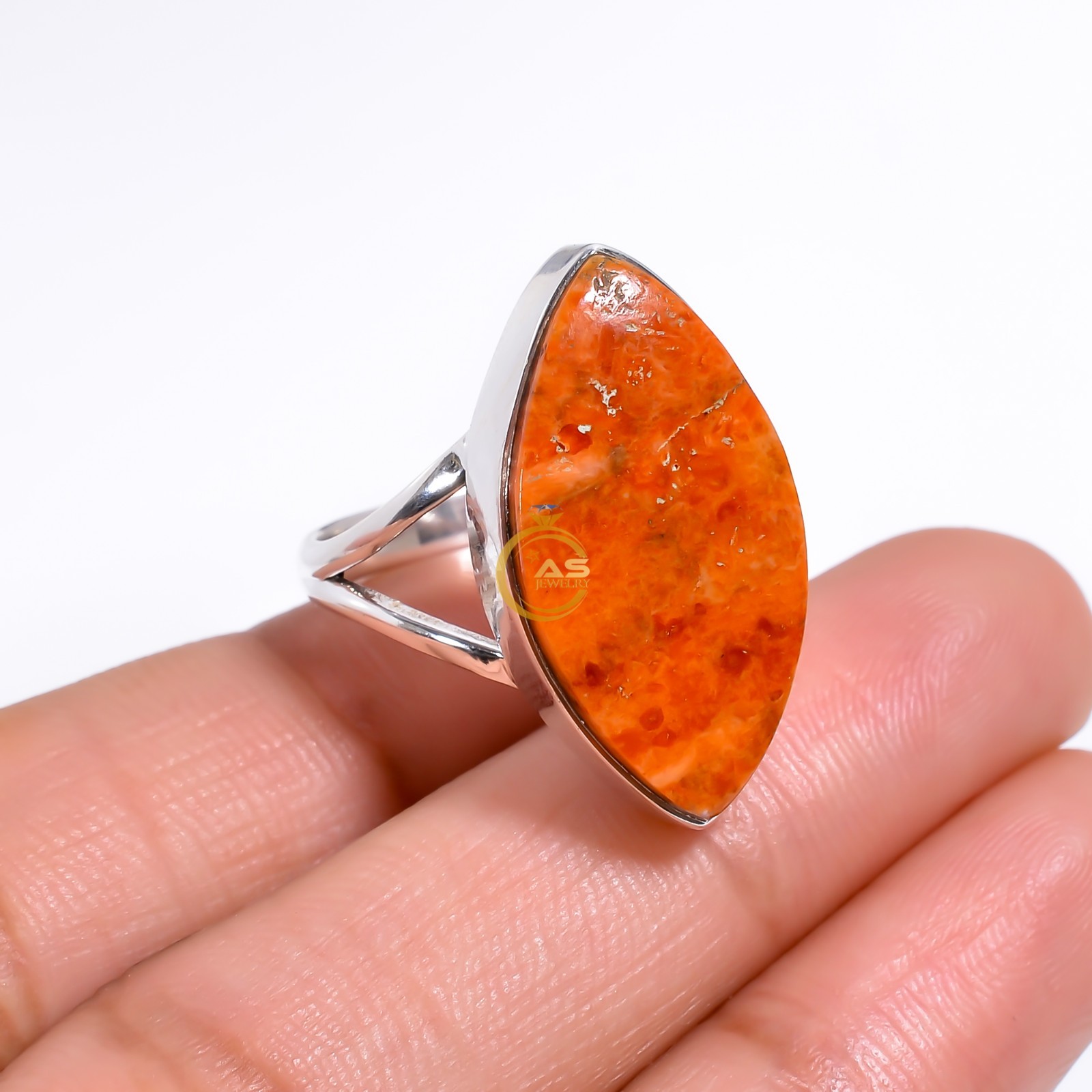 Orange Sponge Coral Ring 925 Sterling Silver Handmade Rings Anniversary Gifts