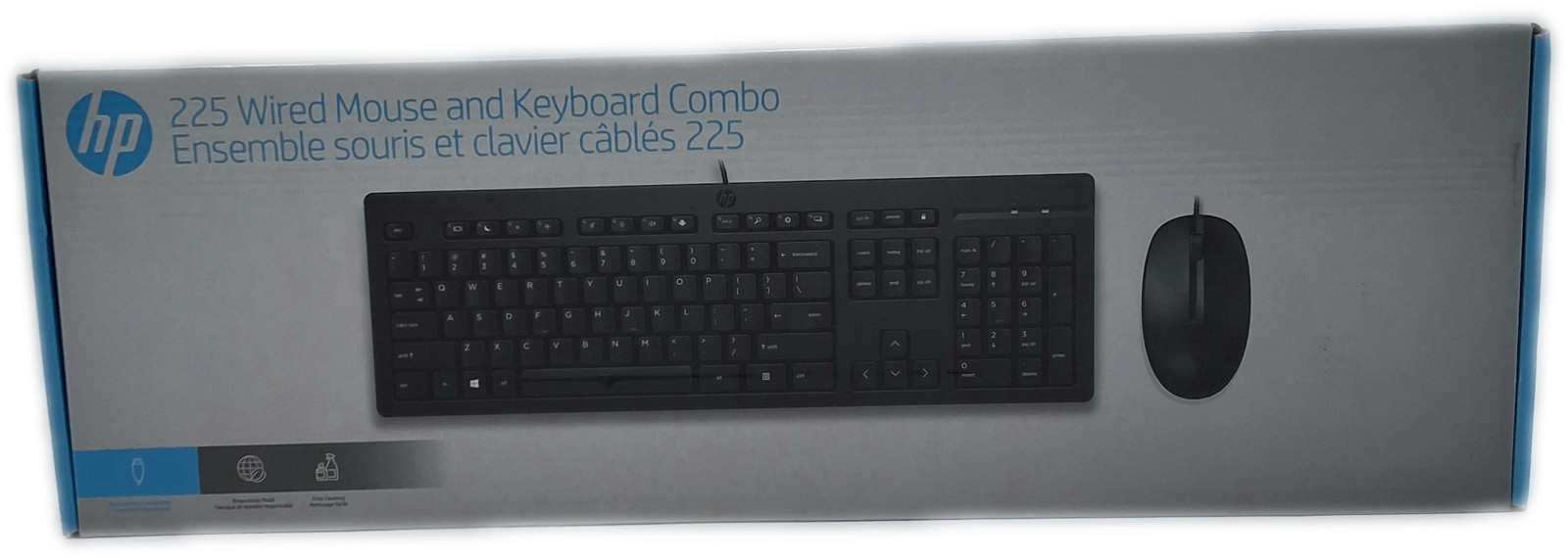 HP 225 Wired Keyboard Mouse Combo Black Quiet Keys 1600 DPI