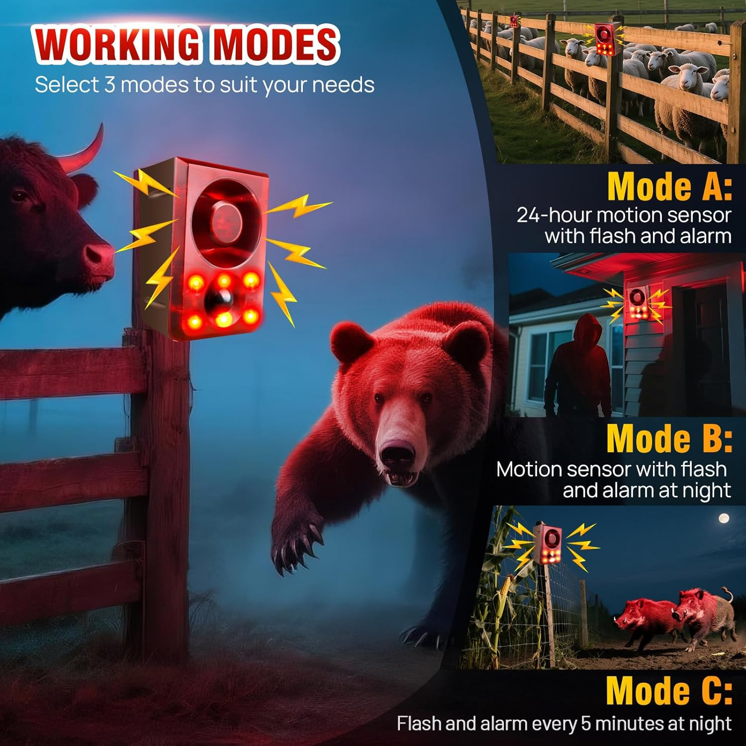 Outdoor Motion Sensor Alarm with 130Db Loud Noise, 13 Sounds Strobe Light