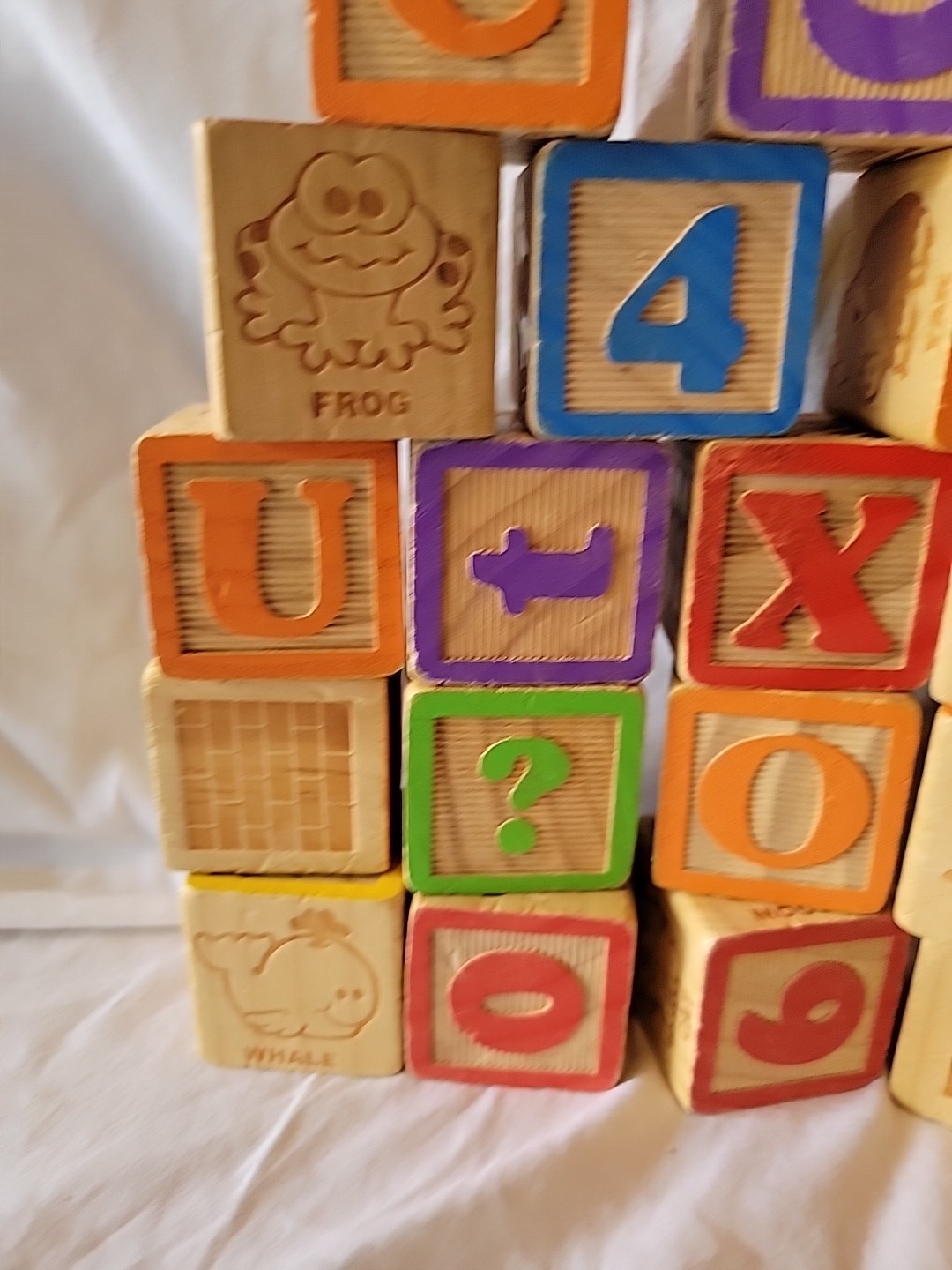 28 1 Wood Alphabet Building Blocks Letters Pictures Animals Kids Toys Learning