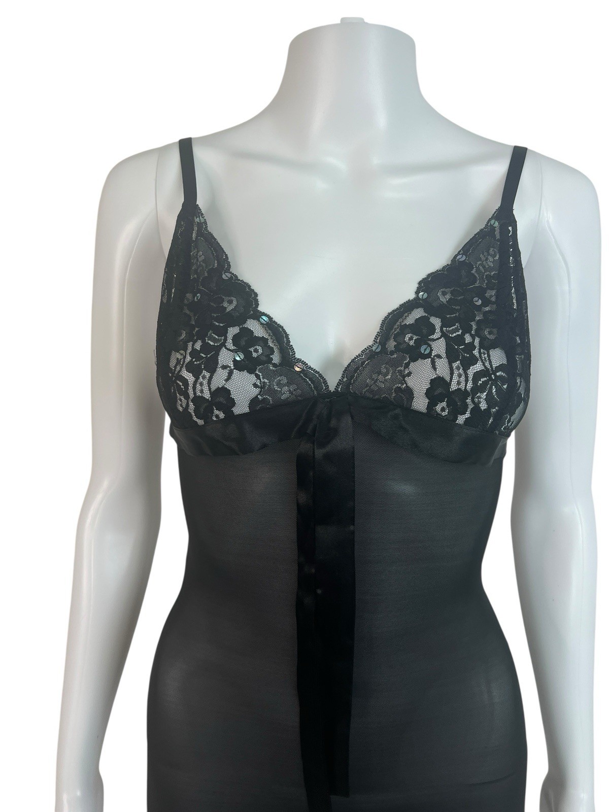 как выглядит Fredericks Of Hollywood 2 pc Black Sheer Lace Nightgown Chemise Robe Size M L фото