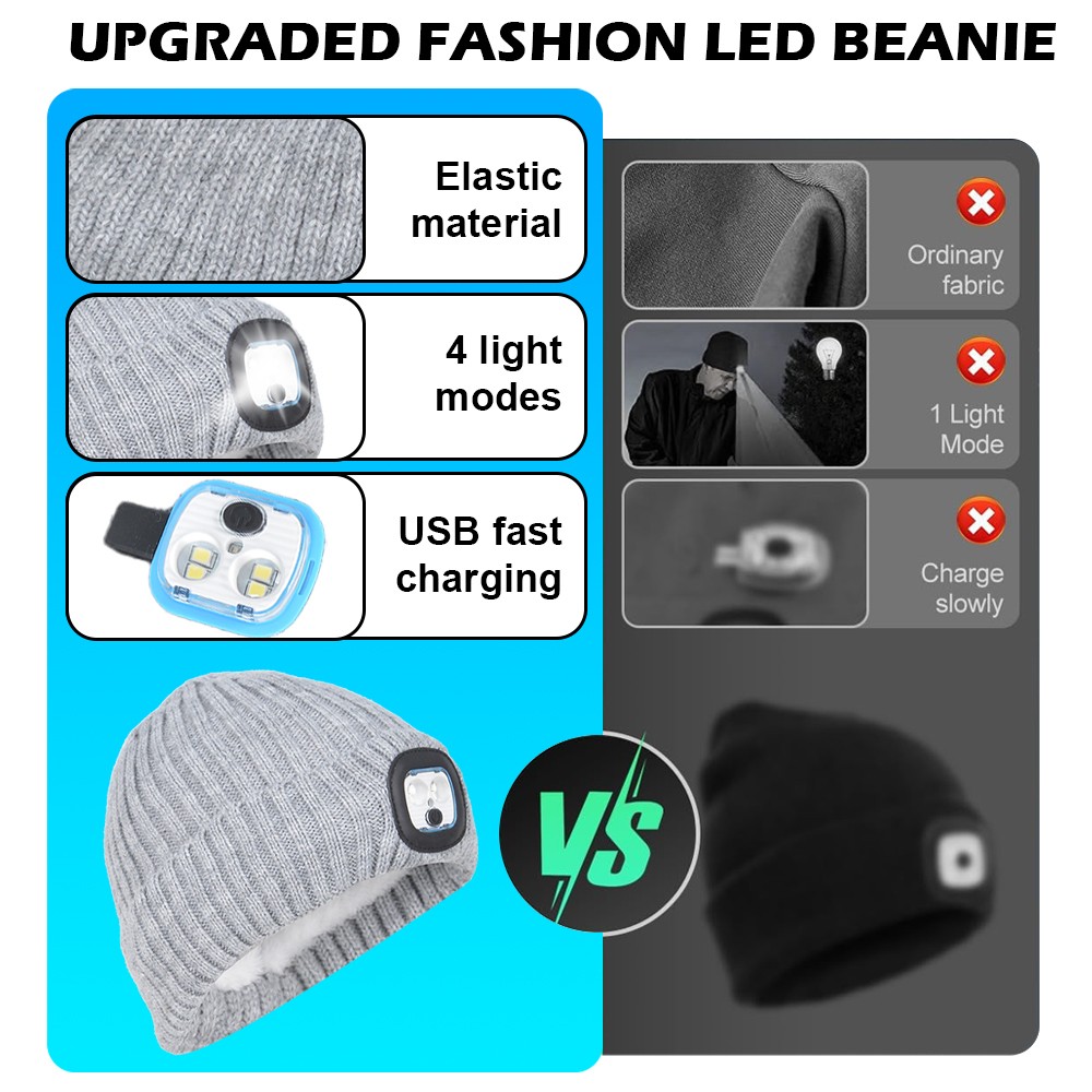 Kids Fleece Lined Beanie Hat w/LED Light USB Rechargeable Winter Headlamp Cap