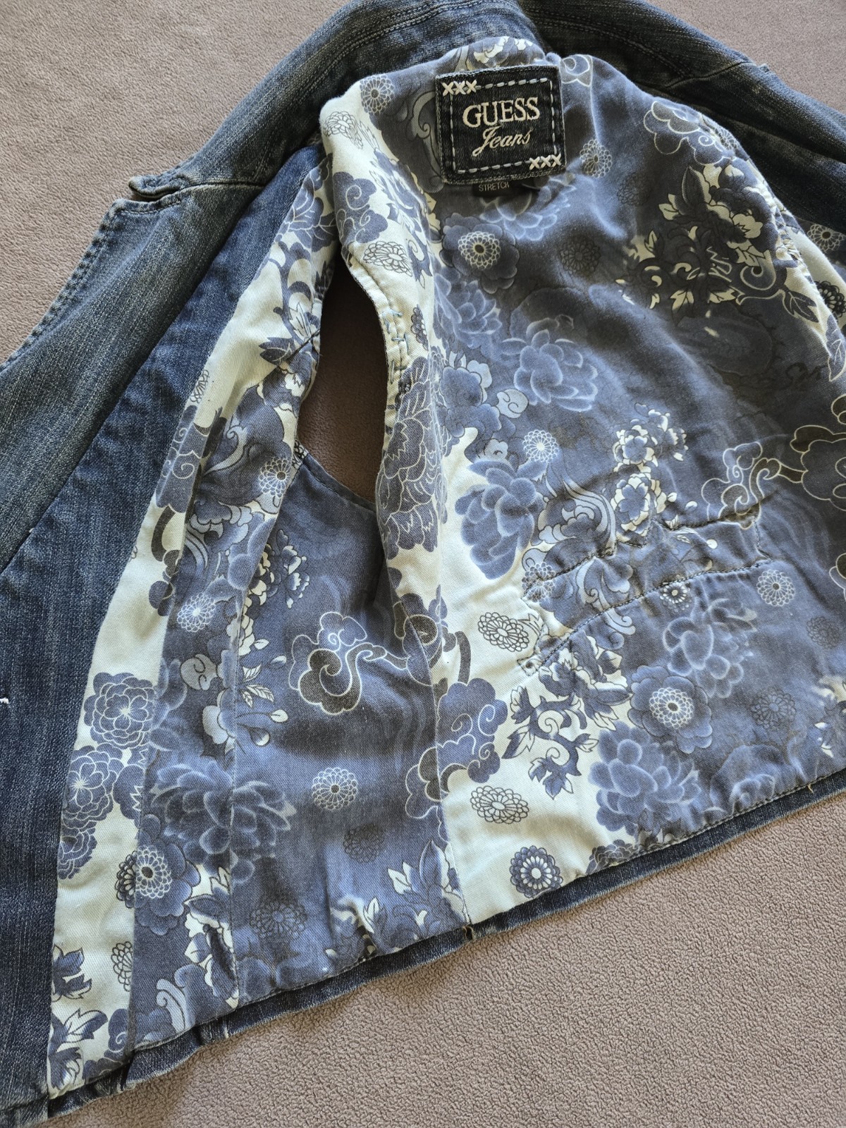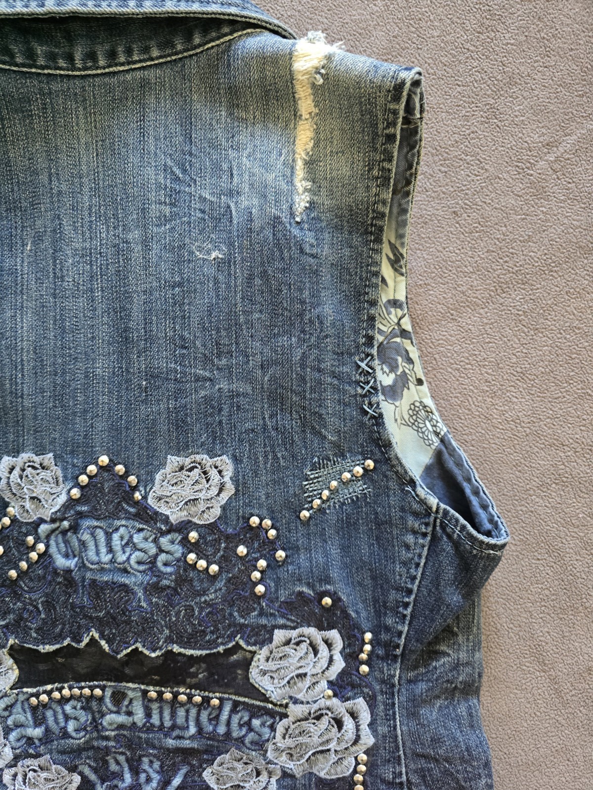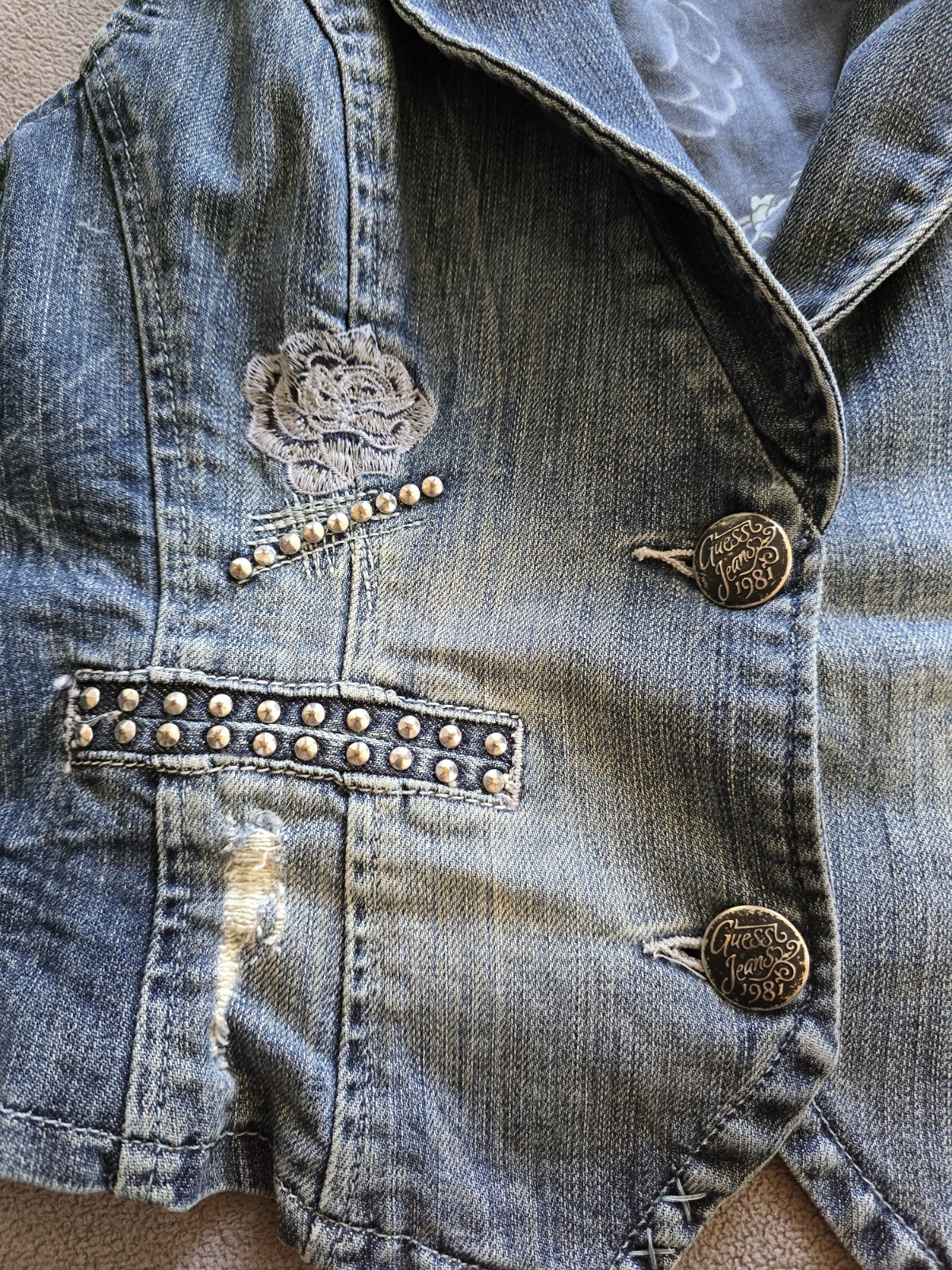 как выглядит Vintage Y2K GUESS Jeans Denim Rhinestone Embroidered Vest Size Large фото