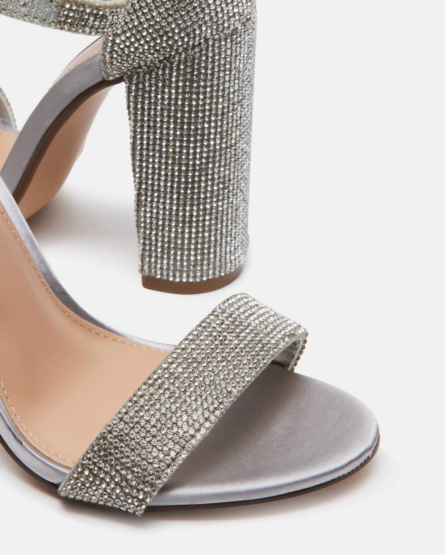 как выглядит Steve Madden Womens Carrson Rhinestone Heeled Sandal Crystal фото