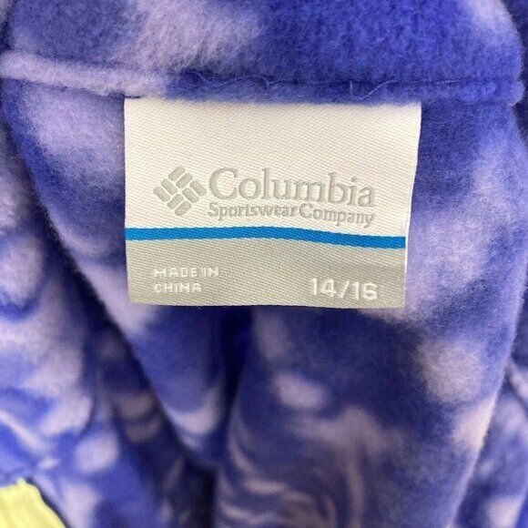 Columbia Fleece Full Zip Jacket Youth 14 16 Fits Womens Small Purple Patterned