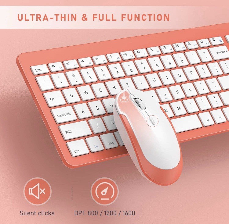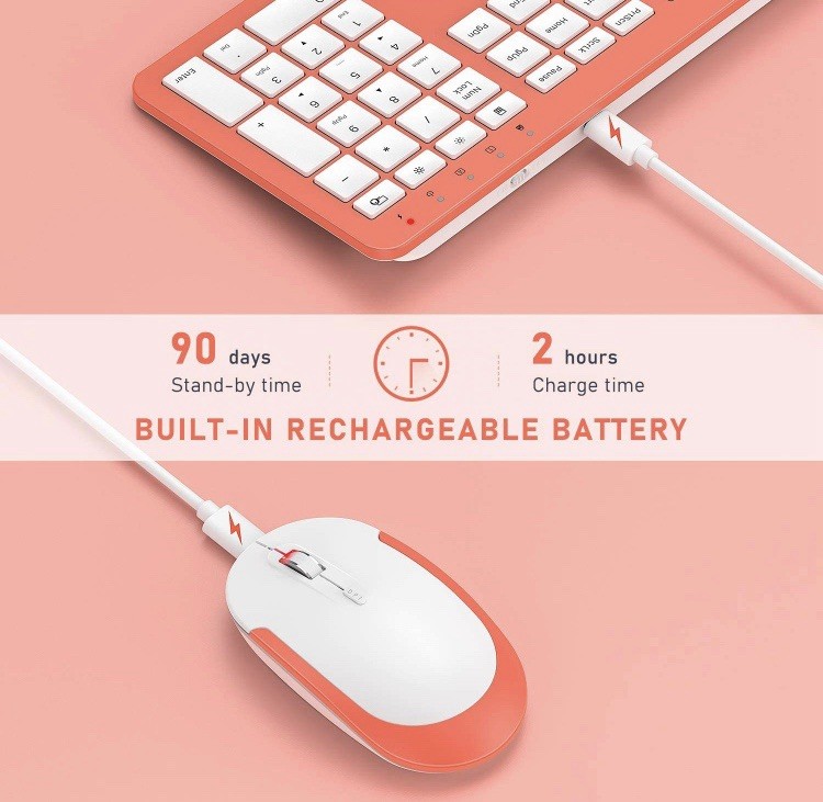 как выглядит Rechargeable Bluetooth Keyboard Mouse Set  Full-Size, Multi-Device Coral фото