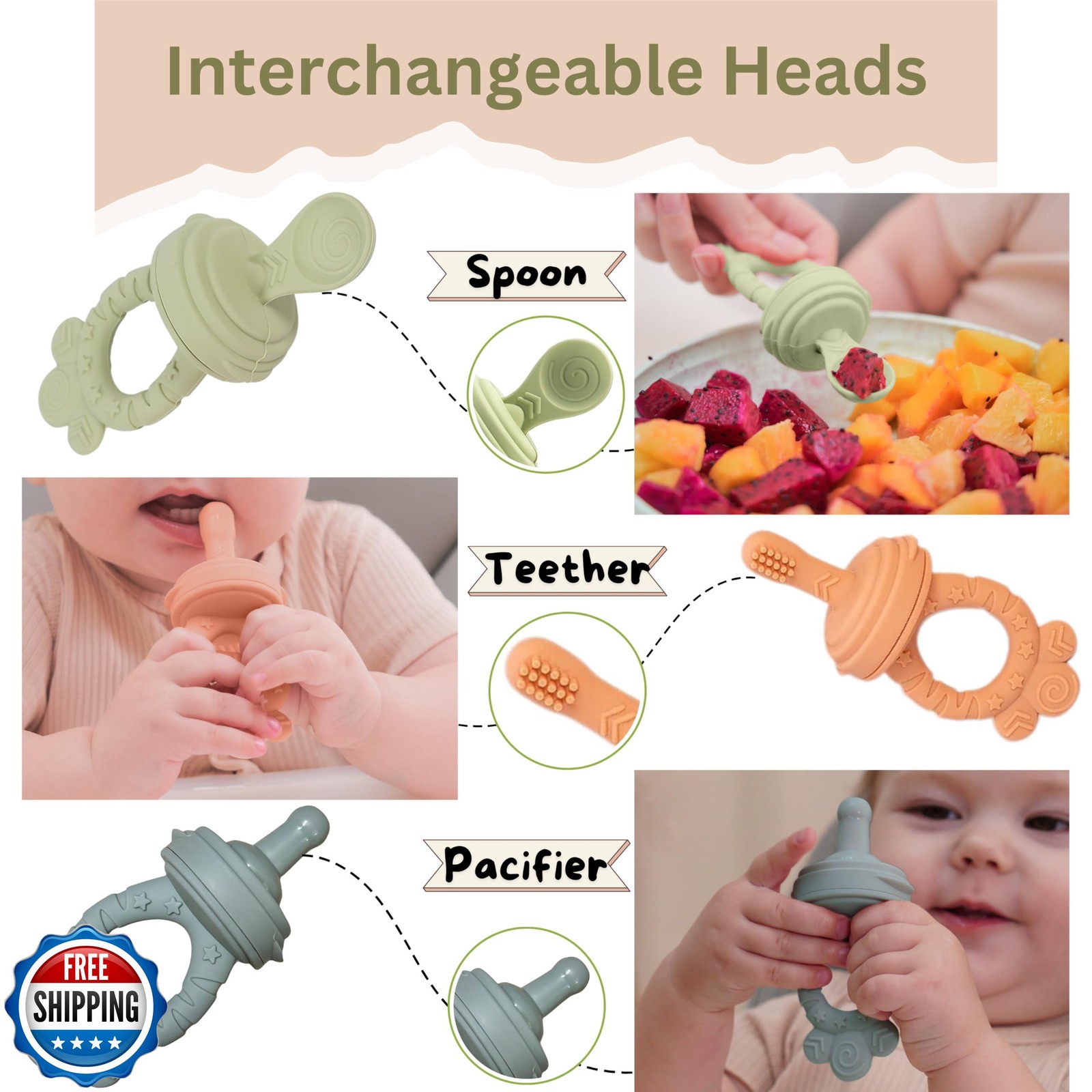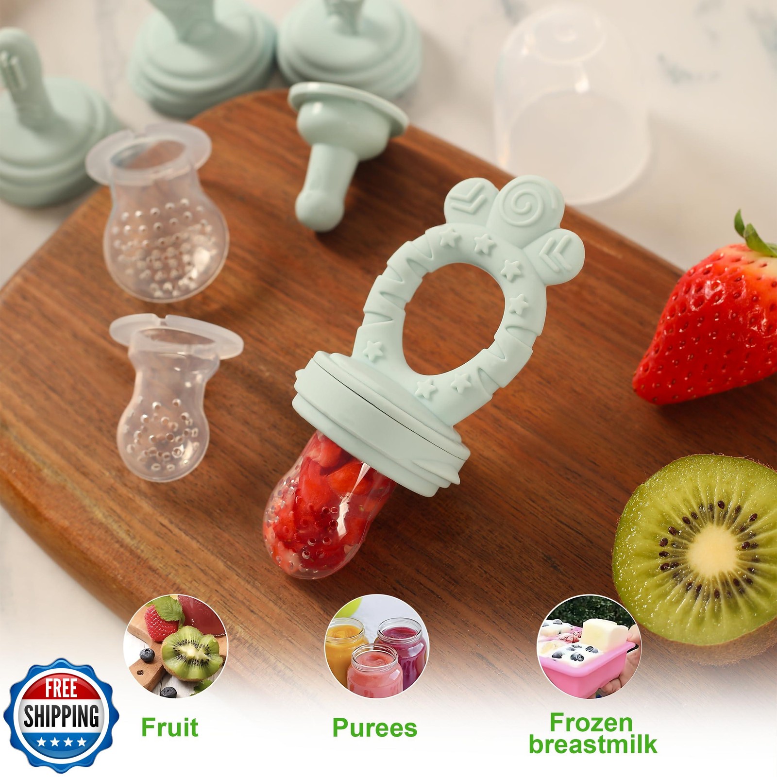Minie Joo Baby Fruit Feeder Pacifier 7-in-1 Silicone Teether Toy and Food F