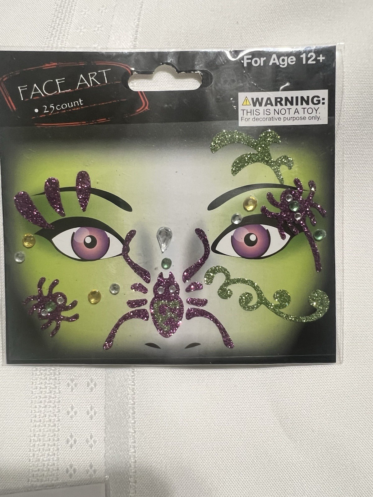 Halloween Glitter Face Art Stickers 3 Pack Spider Roses Flowers ALL NEW