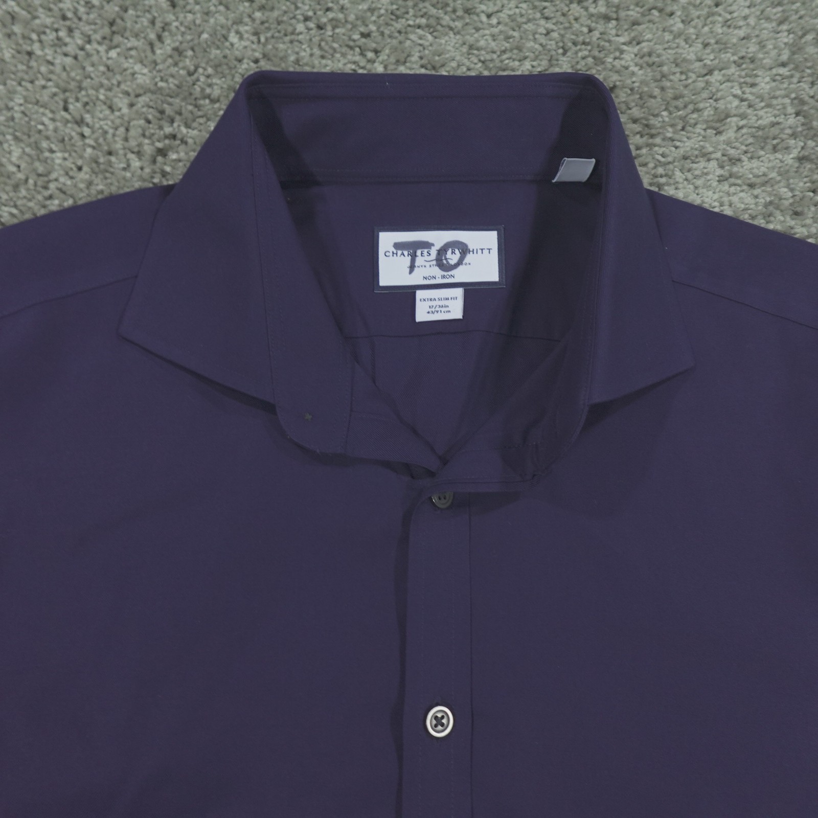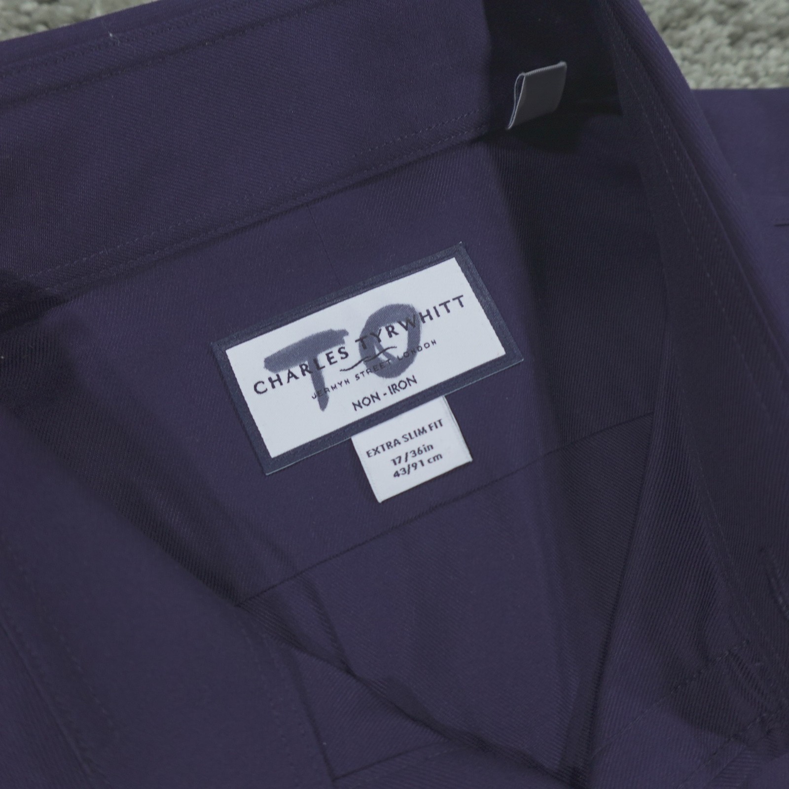как выглядит Charles Tyrwhitt Dress Shirt Mens 17 36 Extra Slim Fit Button Up Non Iron Navy фото