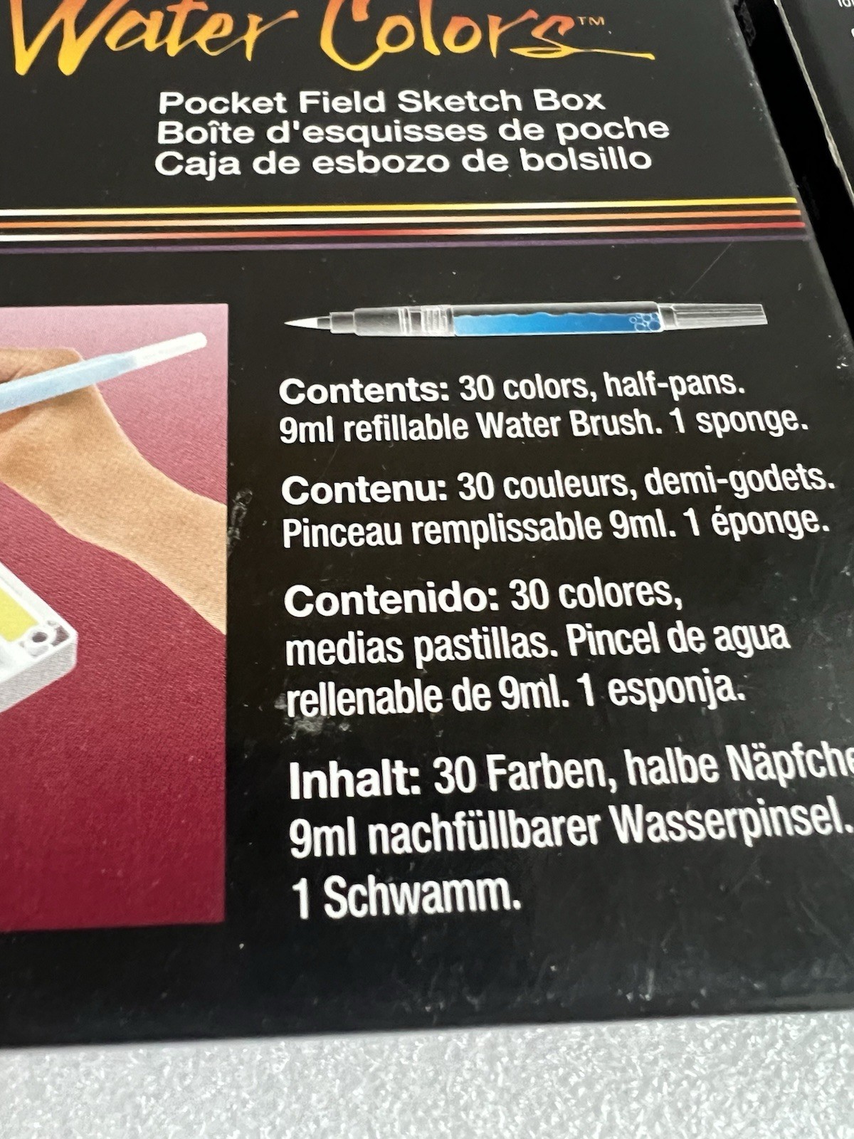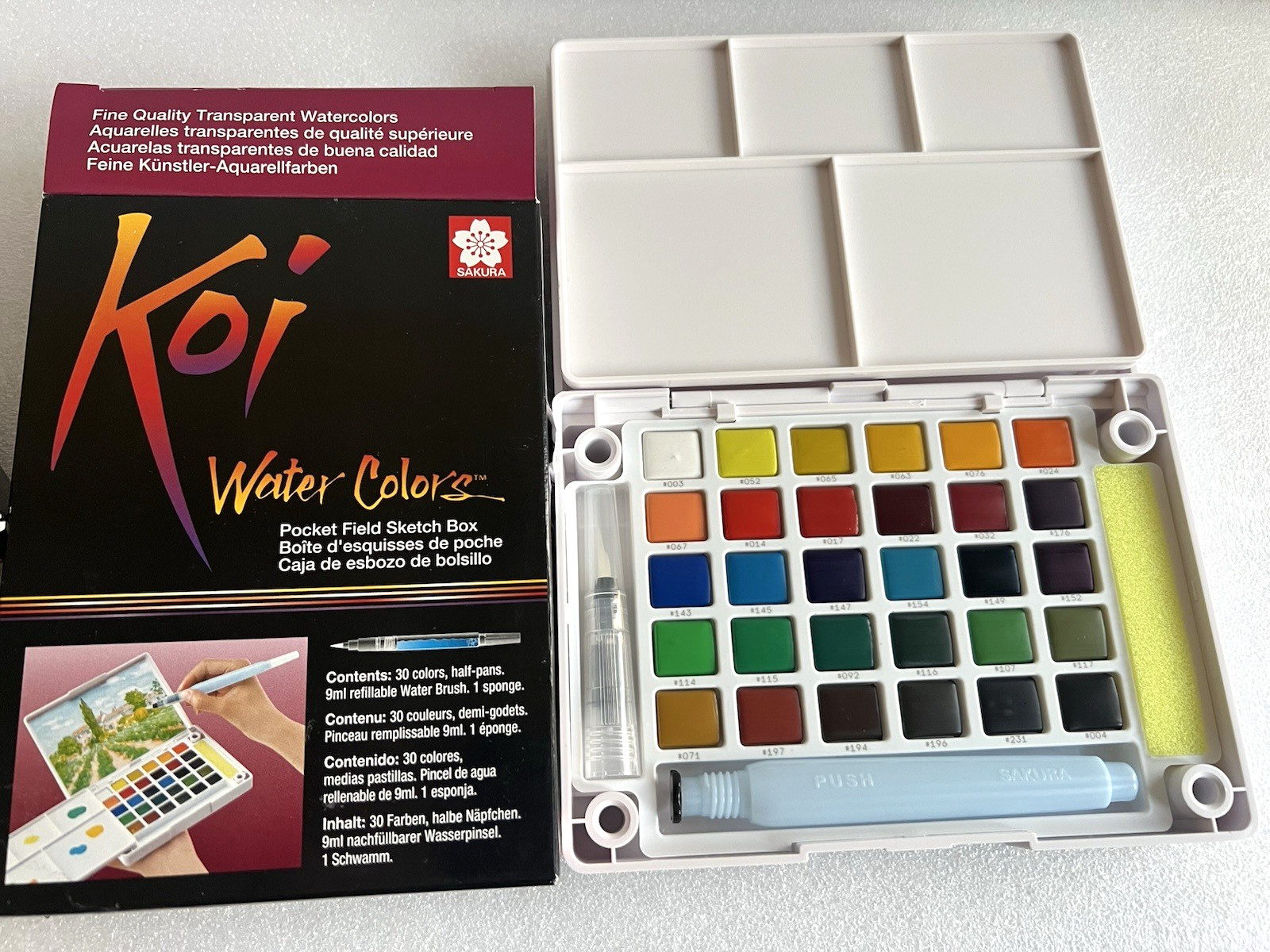 New SAKURA Koi Pocket Field Sketch Kit Watercolor Set Brush Sponge 30 Colors