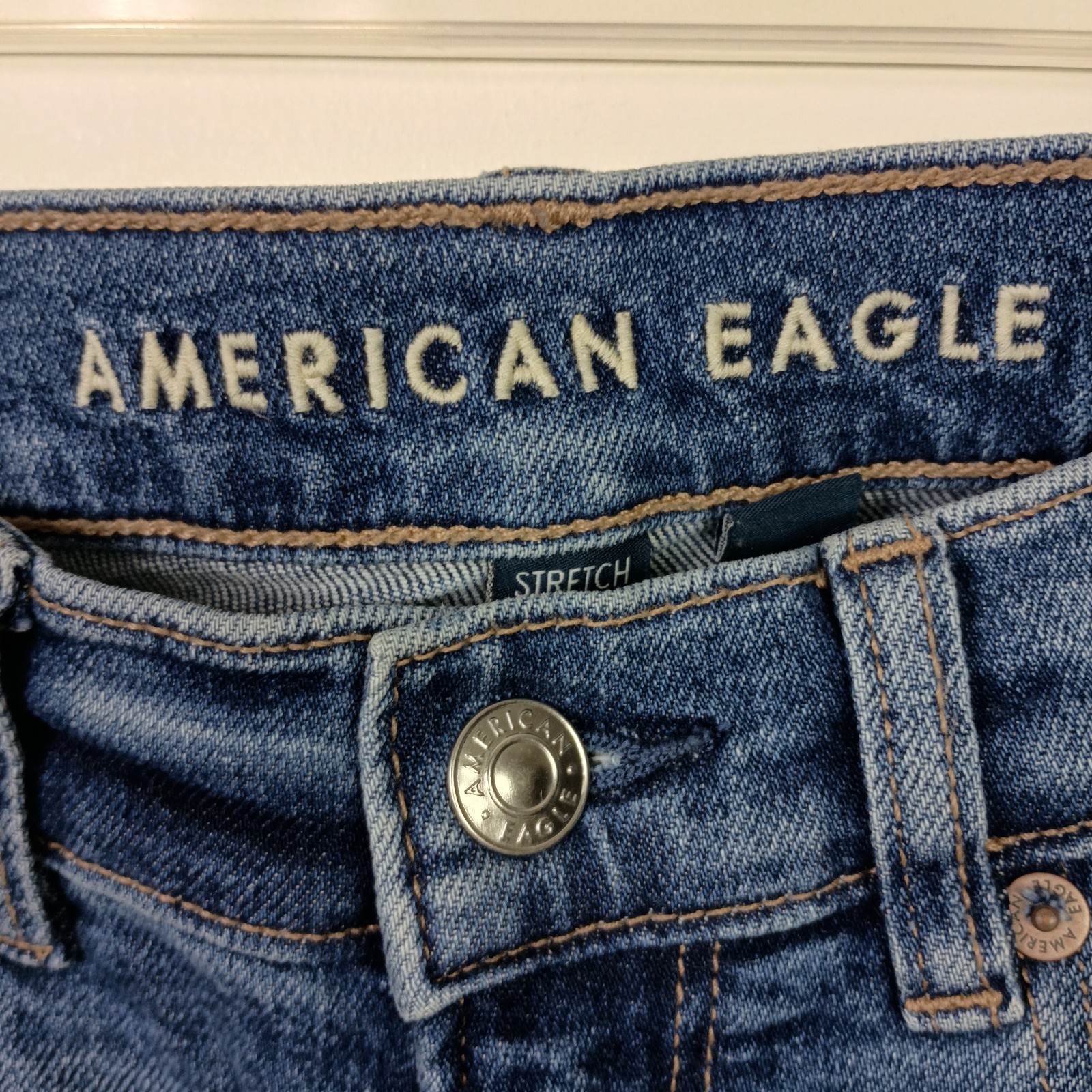 как выглядит American Eagle Baggy Straight Cargo Jean 00 Blue Super High Rise Pockets Y2K фото