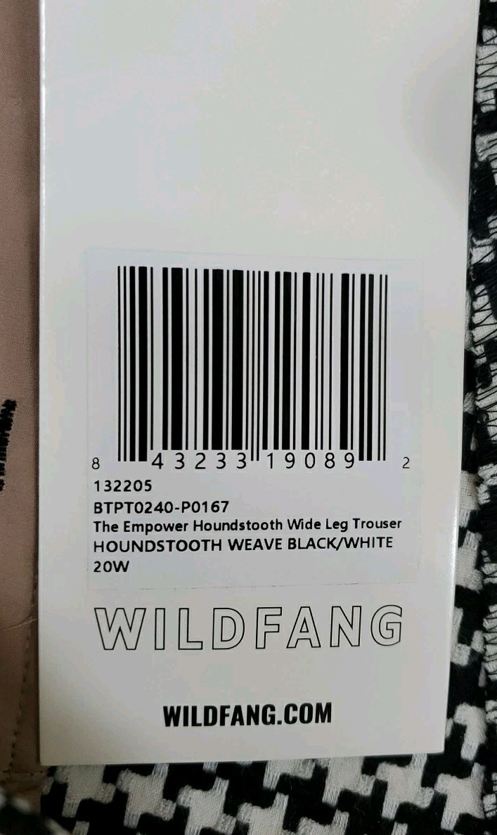 как выглядит New Wildfang The Empower Wide Leg Trouser White/Black Houndstooth Weave Size 20W фото