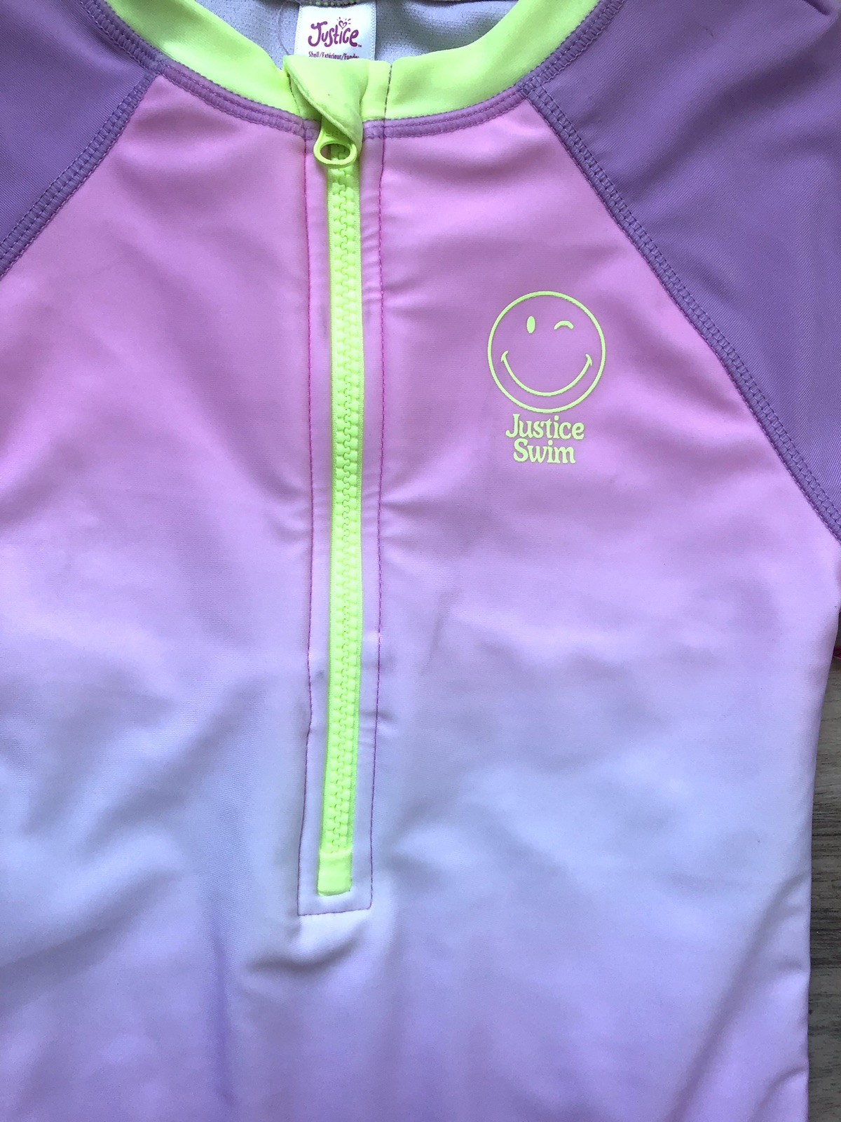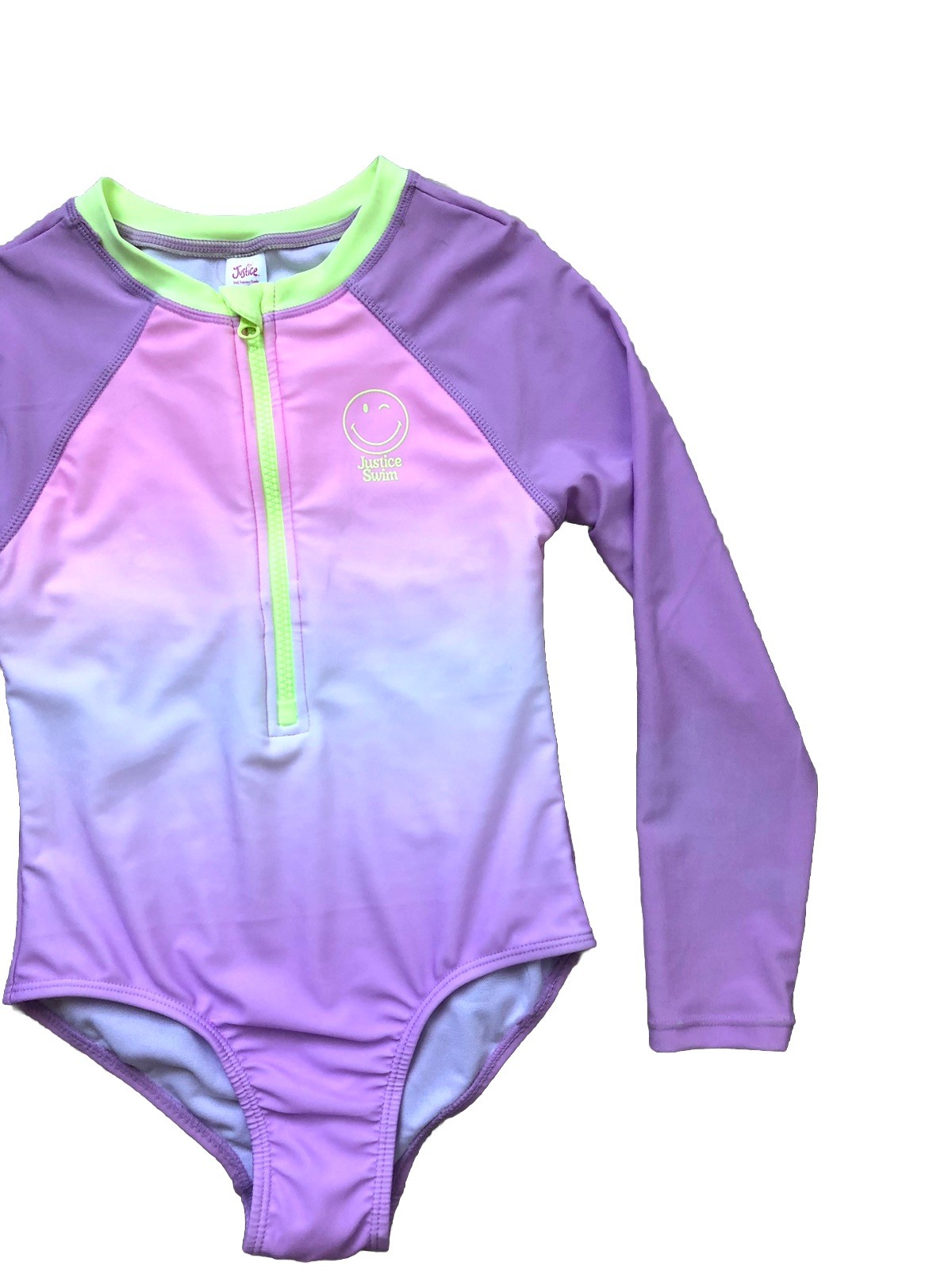 как выглядит Justice Girls Swimming Suit Rash guard Purple UPF 50 Size L 12/14 фото