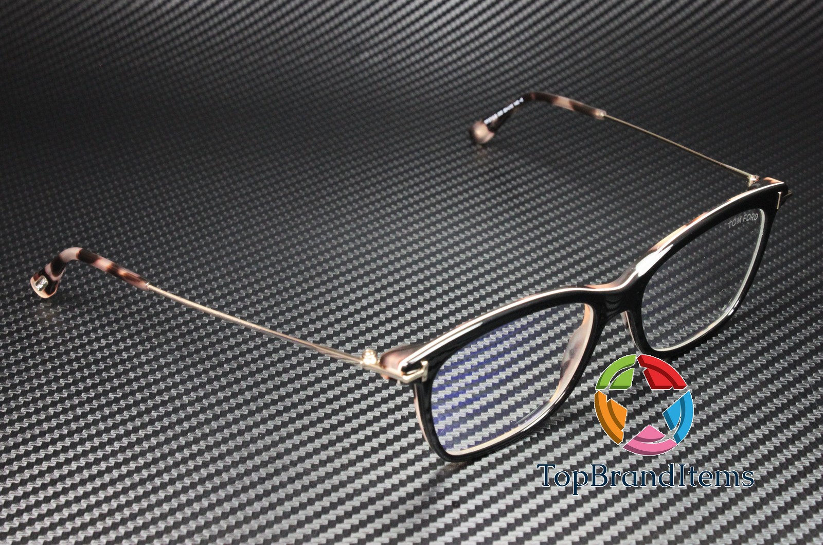 TOM FORD FT5712 B 005 Black Clear Lens Plastic blue filter 50 Women's Eyeglasses