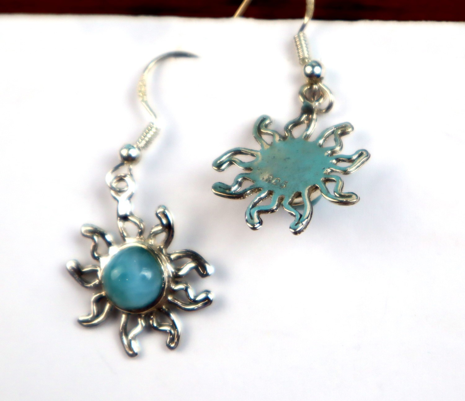 Exquisite Natural Sky Blue Larimar .925 Sterling Silver Sun Earrings 37mm