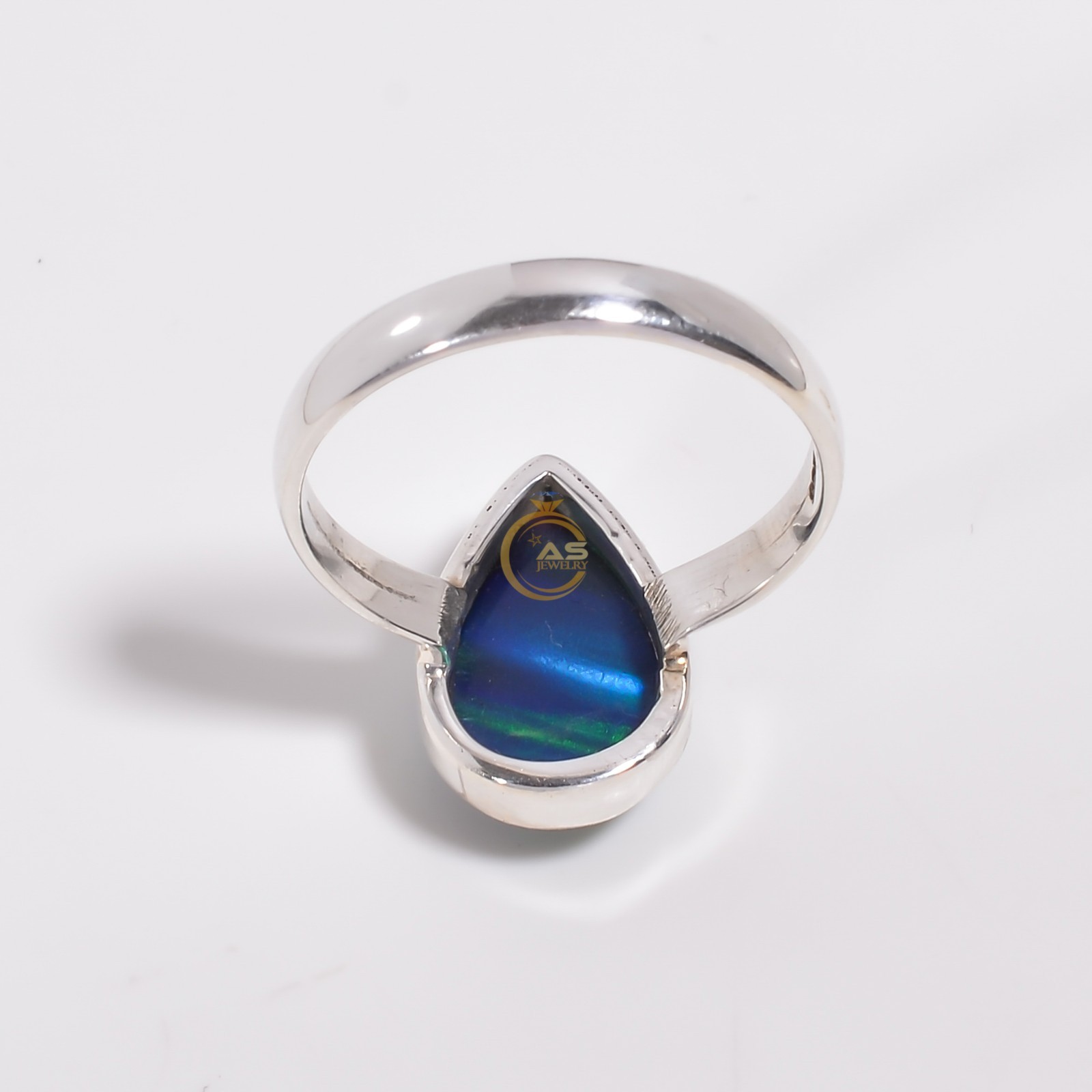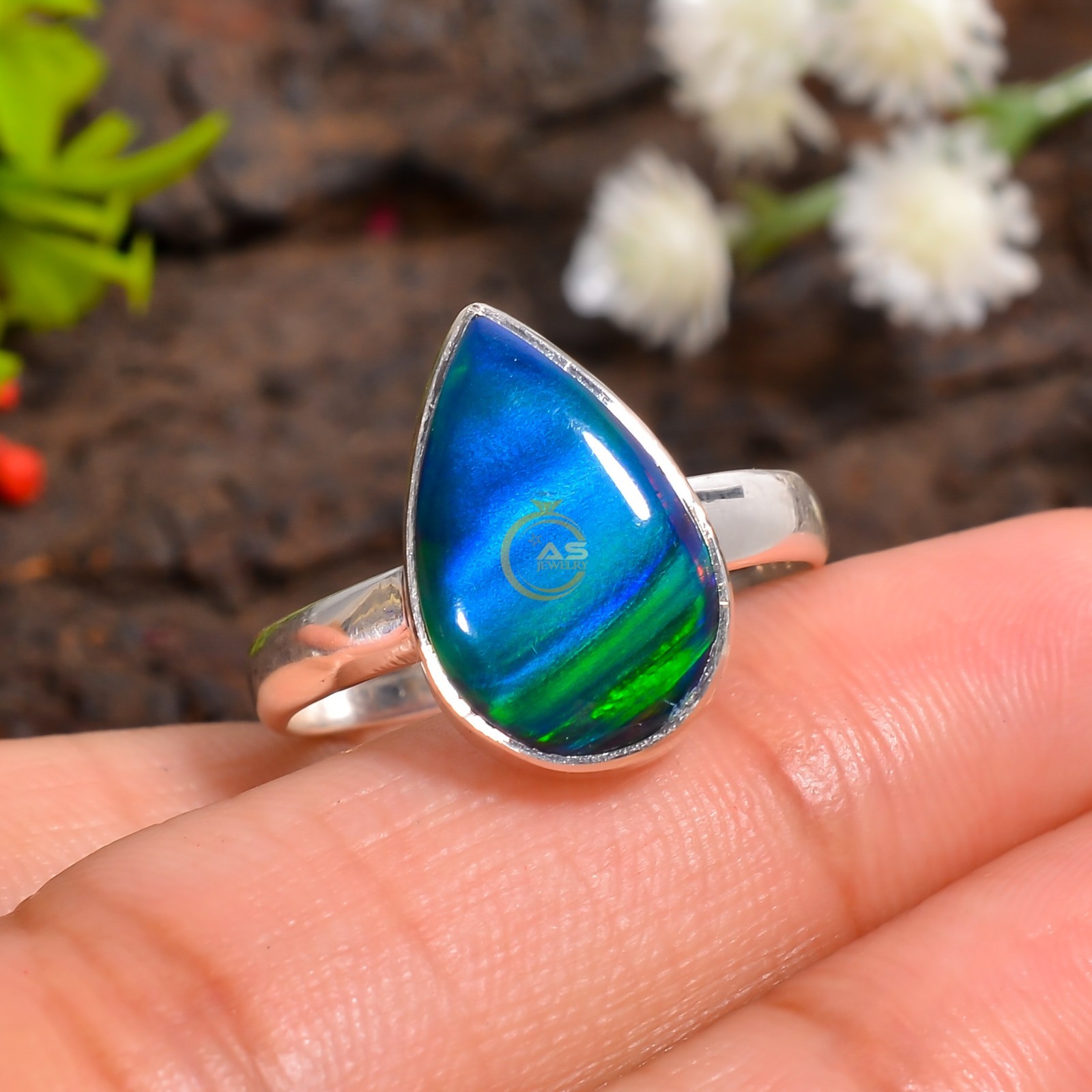 Rainbow Aurora Opal Ring 925 Sterling Silver Rings Gift Jewelry for Women