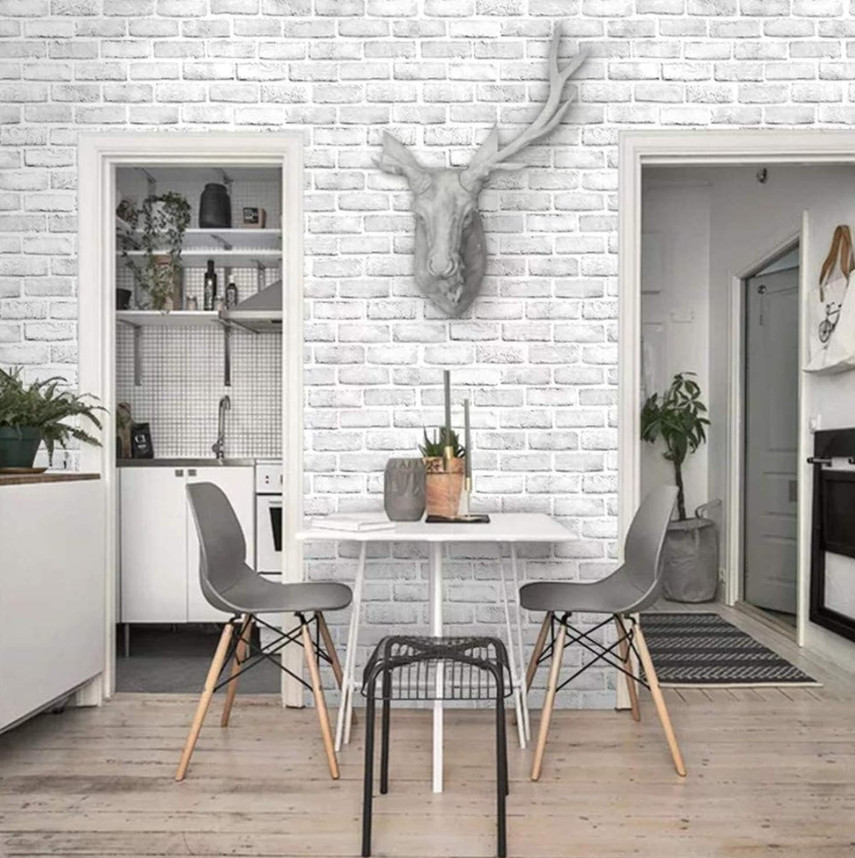 White Gray Brick Wallpaper Self-adhesive Contact Paper Peel and Stick Backsplash