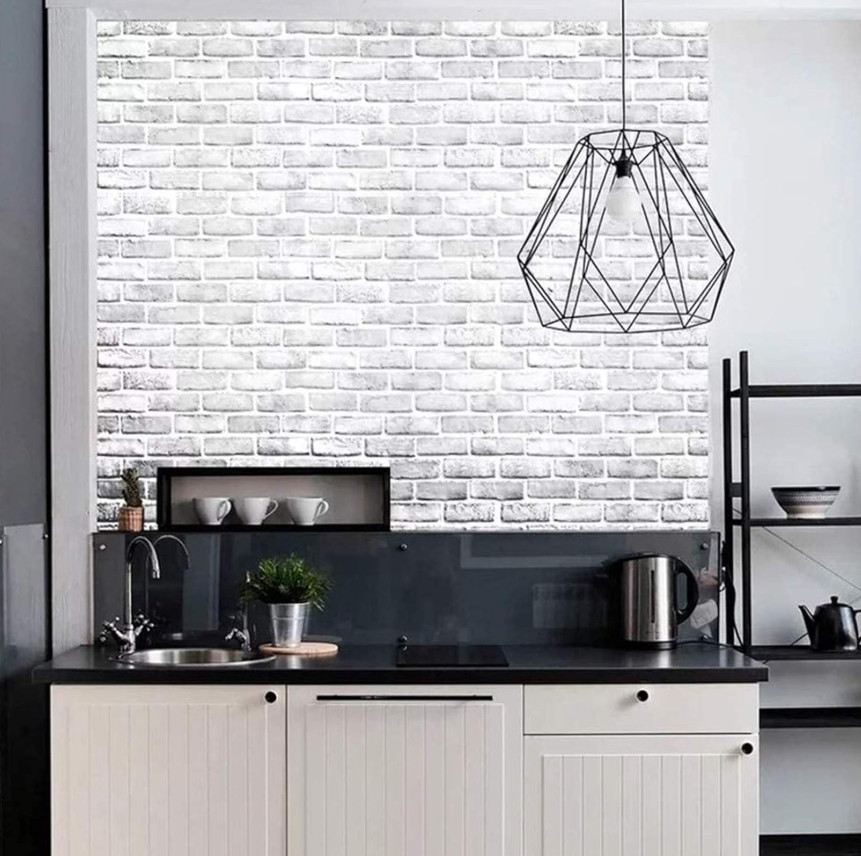 как выглядит White Gray Brick Wallpaper Self-adhesive Contact Paper Peel and Stick Backsplash фото