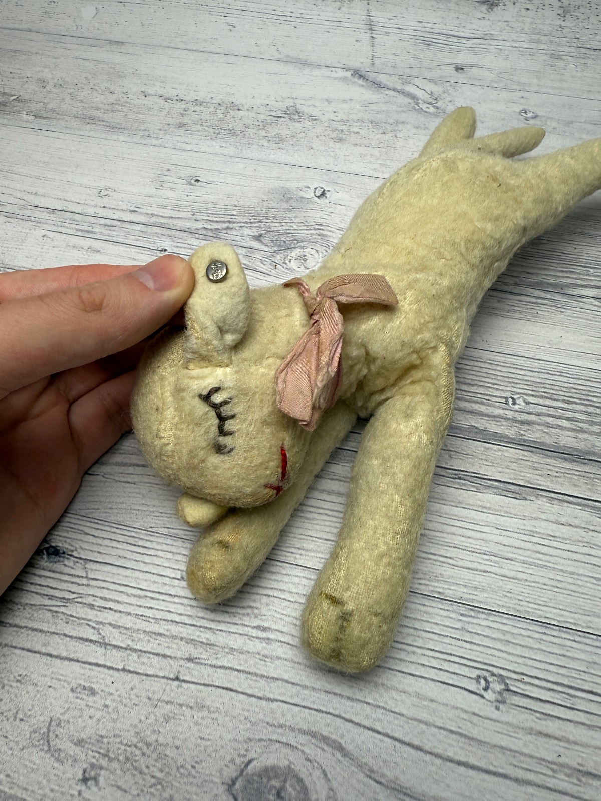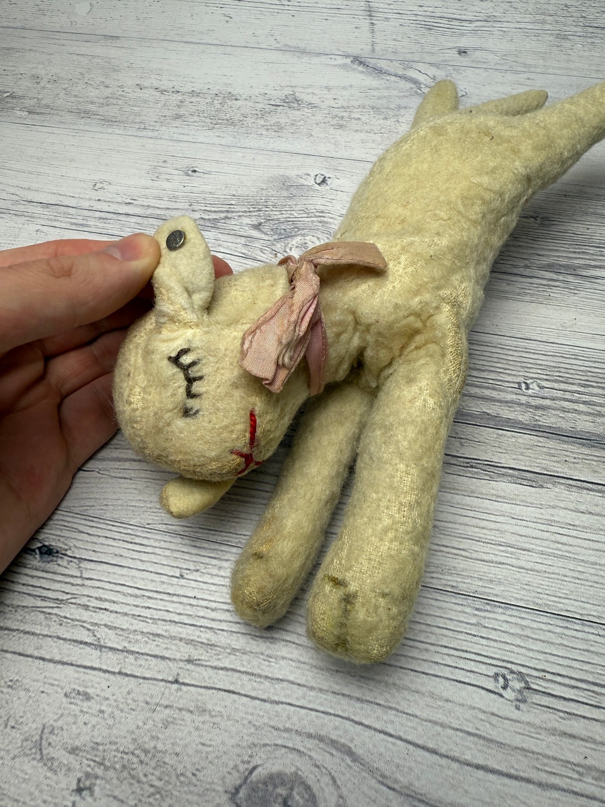 как выглядит Vintage Steiff Sleeping Lamb Collectible Stuffed Toy Animal 25cm 9.5 Button Ear фото