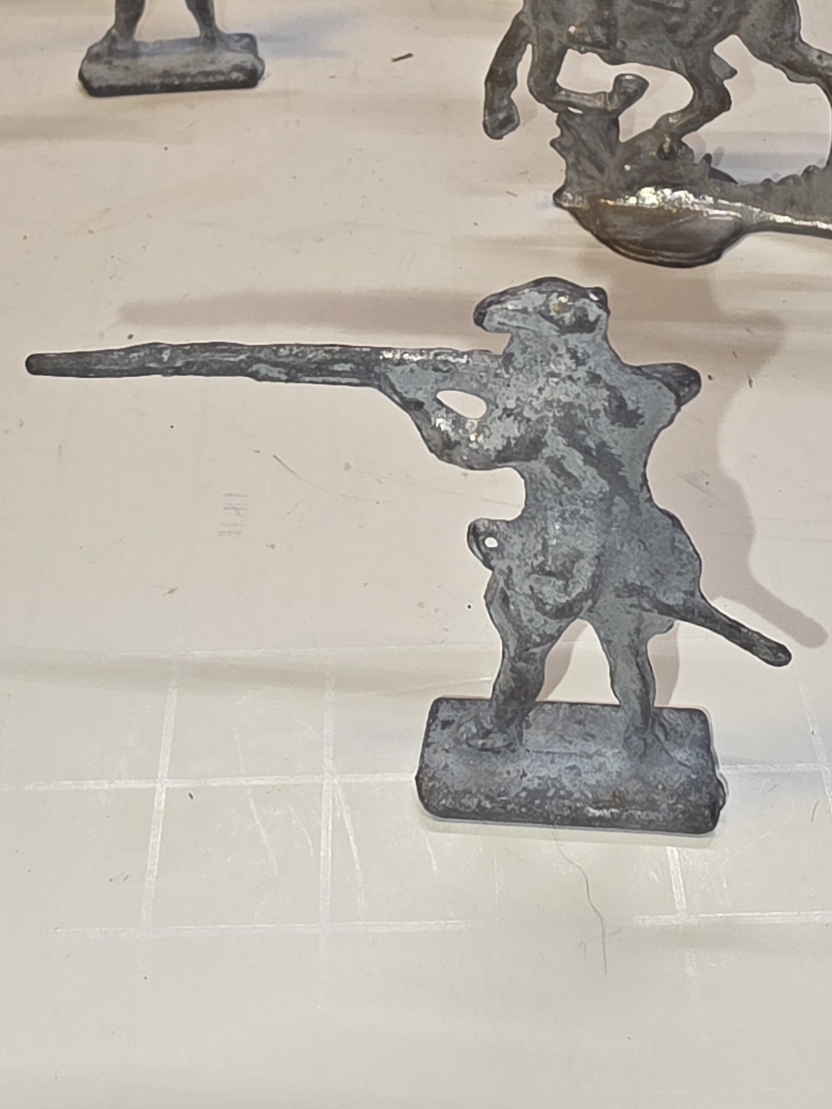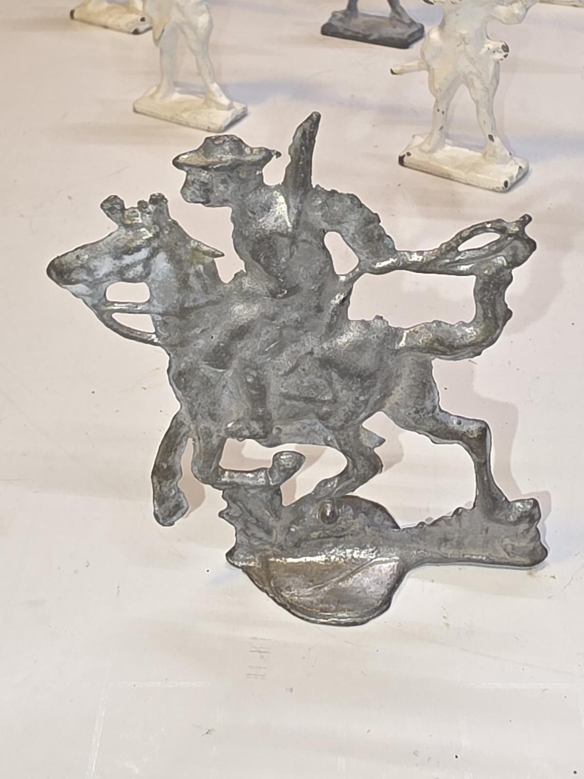 как выглядит VINTAGE LOT OF 10 LEAD SOLDIERS 6 Long Riflemen, 4 Cavalrymen Stamped фото