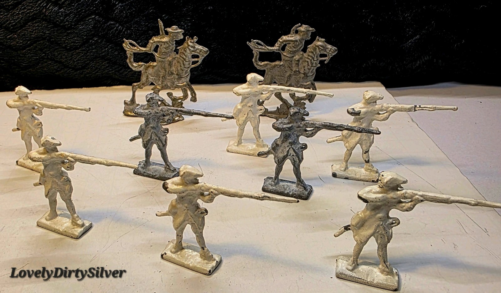 VINTAGE LOT OF 10 LEAD SOLDIERS 6 Long Riflemen, 4 Cavalrymen Stamped