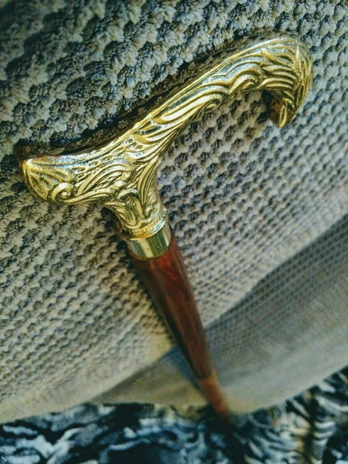 как выглядит 36 Antique Solid Brass Victorian Wooden Walking Stick Vintage Handmade Cane фото