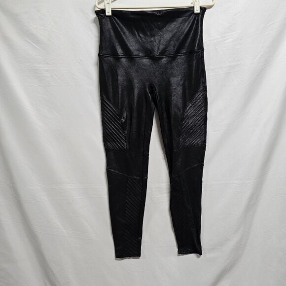 Spanx Faux Leather Moto Leggings Women Size M Black