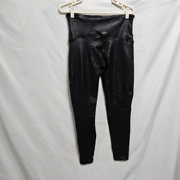 как выглядит Spanx Faux Leather Moto Leggings Women Size M Black фото