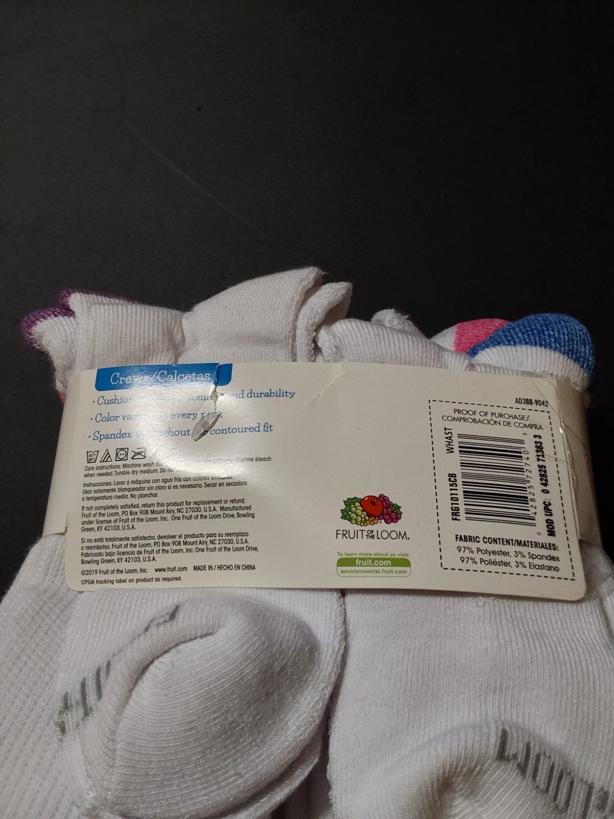 как выглядит 12 PAIR FRUIT OF THE LOOM GIRLS CREWS STAIN RELEASE CREW SOCKS WHITE L 4-10 NEW фото