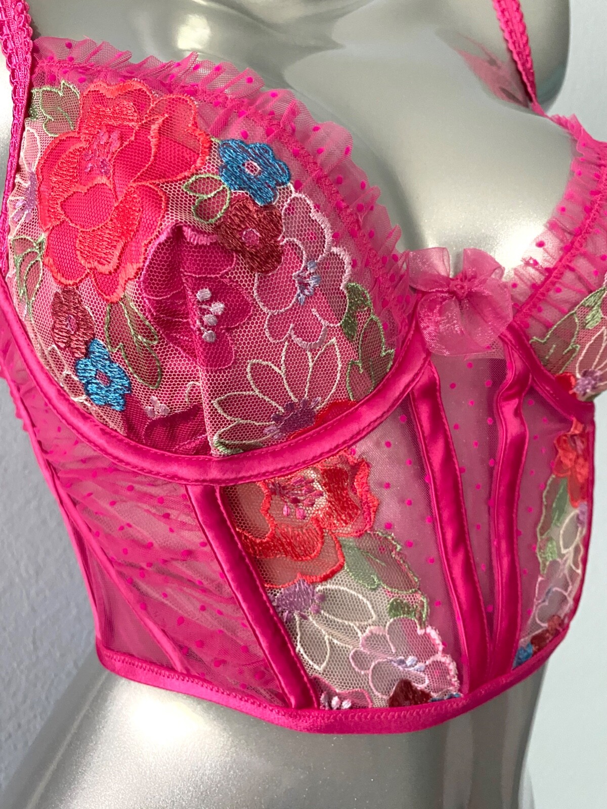 как выглядит For Love Lemons Bustier Bra Victorias Secret Pink Floral Luella Underwire M фото
