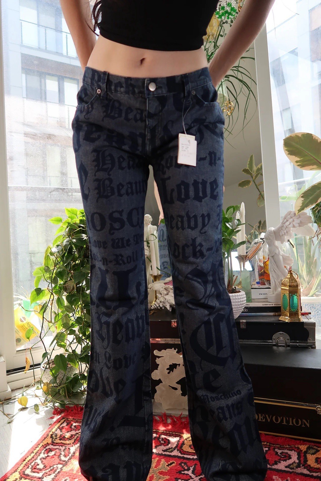 NWT VINTAGE MOSCHINO JEANS ALLOVER ROCK N ROLL PRINT DENIM PANTS