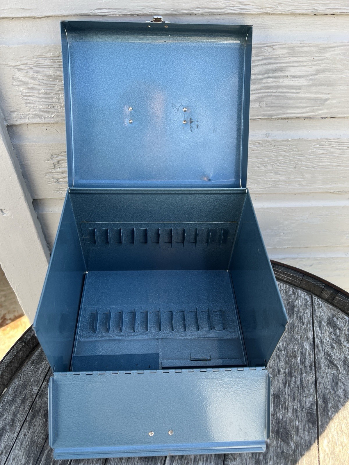 Metal Blue 8mm Movie Reel Chest Box 12 Slot Film Storage Case---8.75 X 7.5
