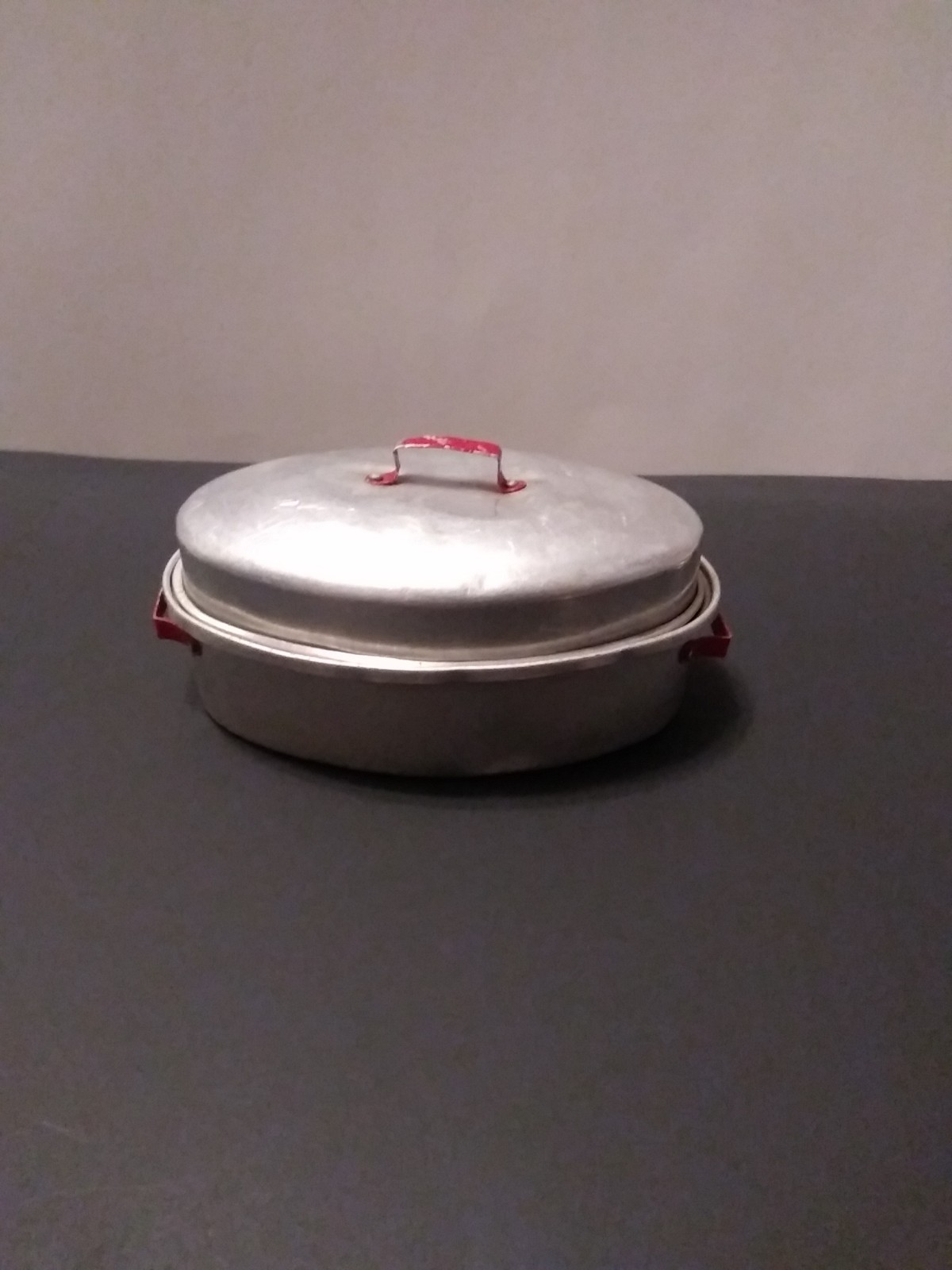 Vintage Metal Aluminum Red Childs Toy Roaster Lid Tea Kettle And Lid