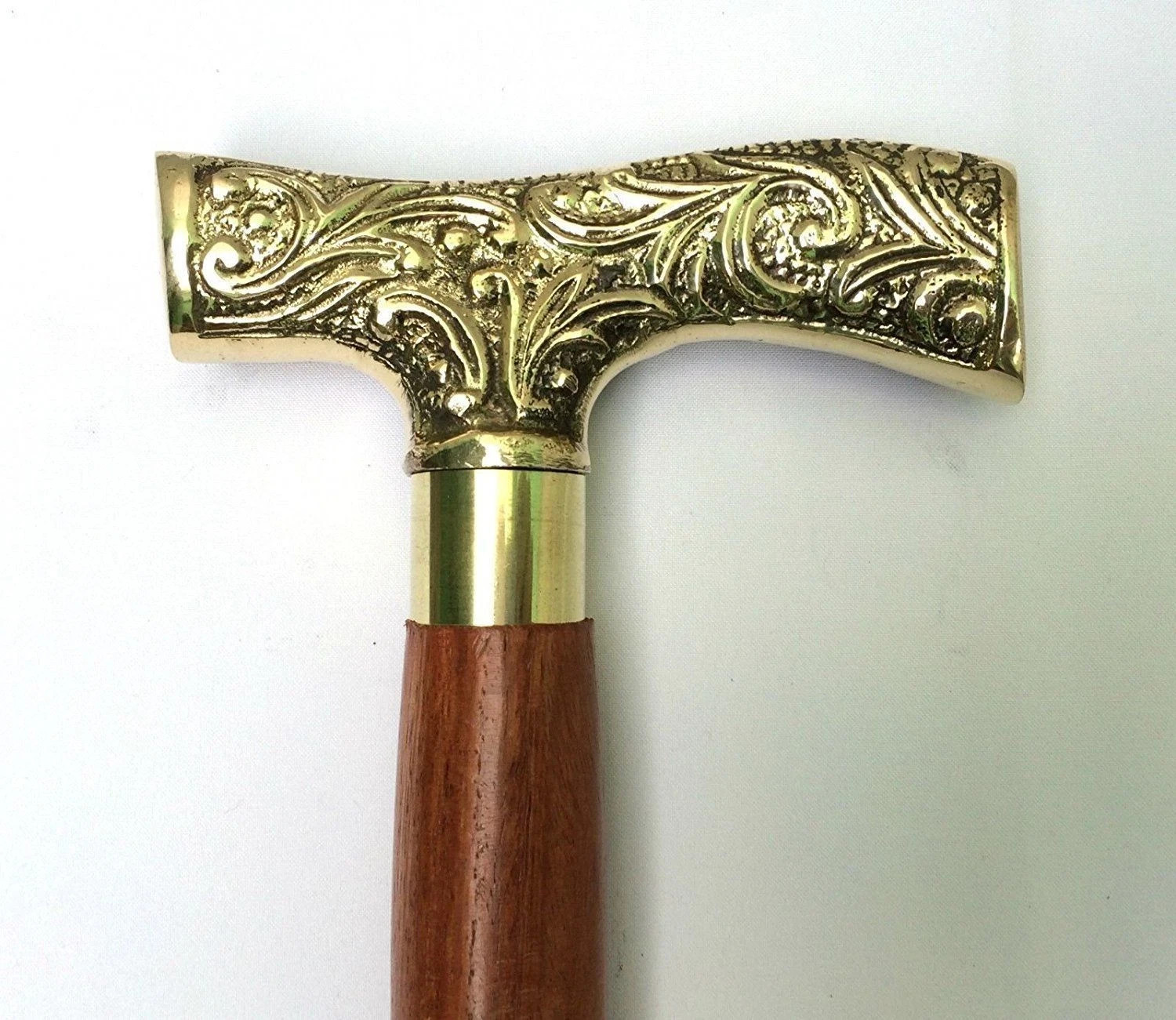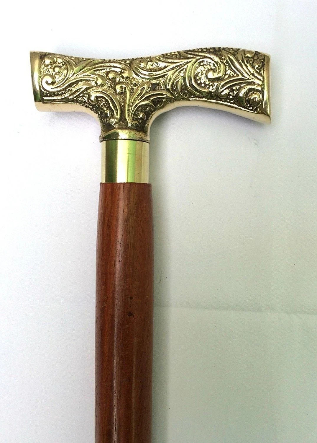 36'' Victorian Solid Brass Designer Handle Wooden Walking Stick/Canes Vintage