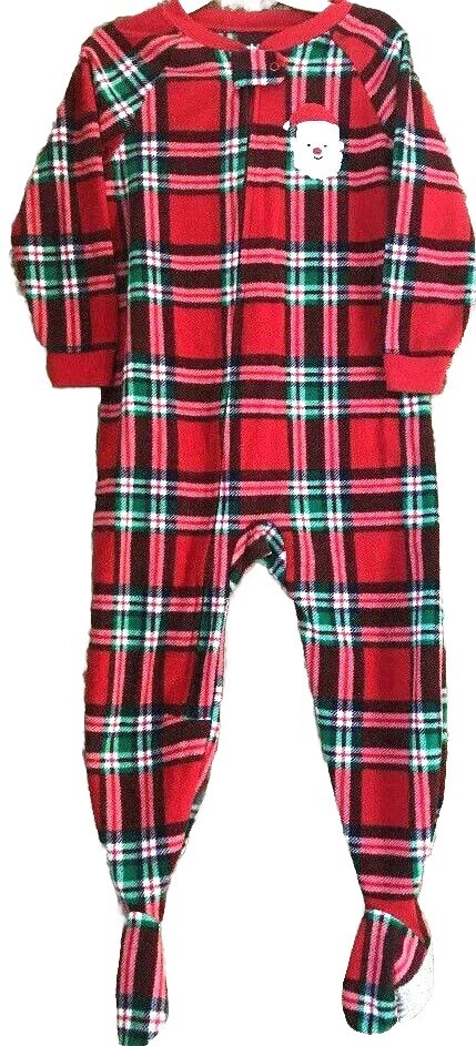Carter's Santa Christmas Pajamas Plaid Print Fleece M Footed Sleeper Zipper PJ's