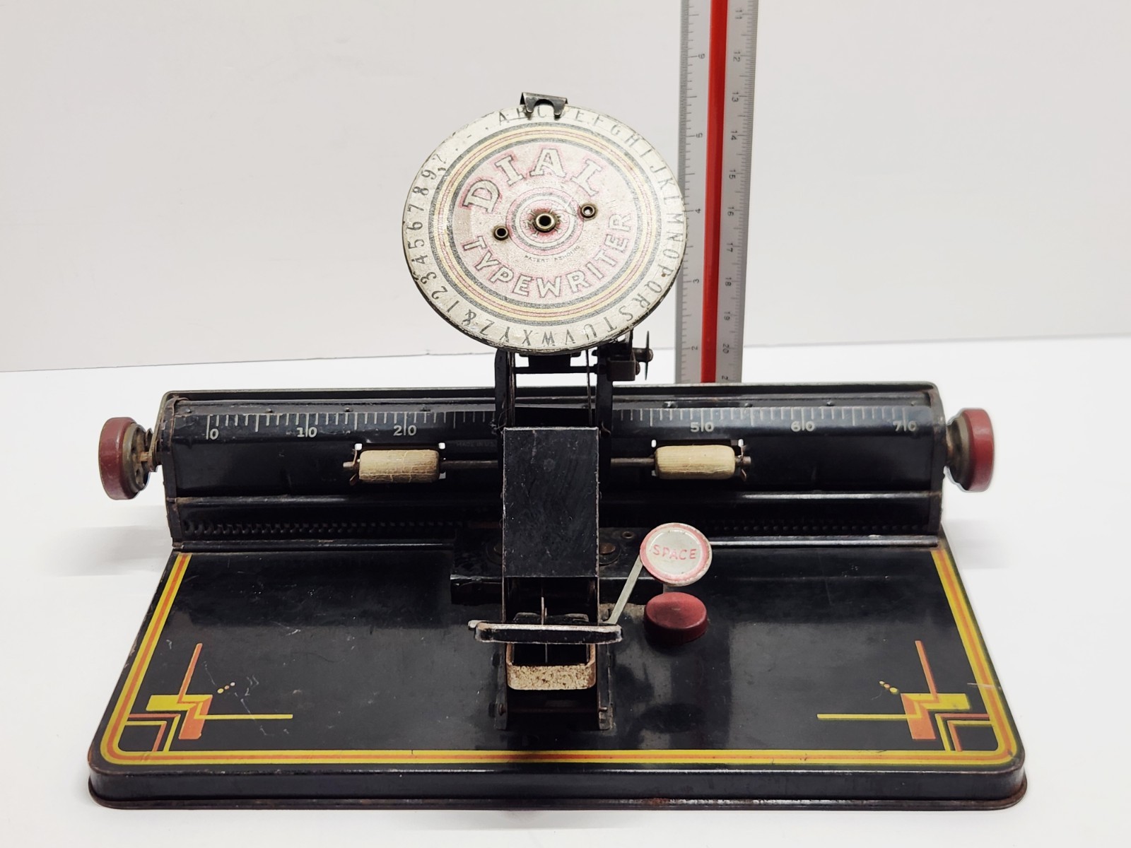 как выглядит Vintage Tin Litho Toy Dial Typewriter MARX S2A1 фото