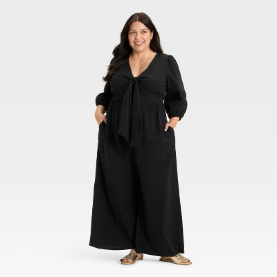как выглядит Womens Flutter Elbow Sleeve Tie-Front Jumpsuit - Ava Viv фото