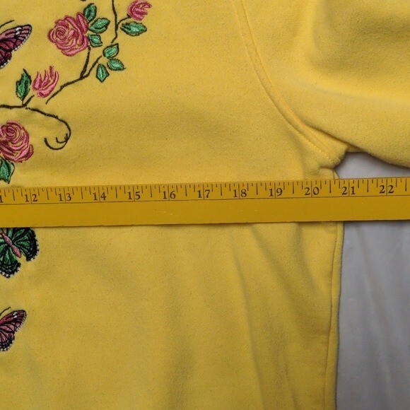 как выглядит Vintage Grannycore Yellow Butterfly Embroidered Double Collar Sweatshirt Sz M фото