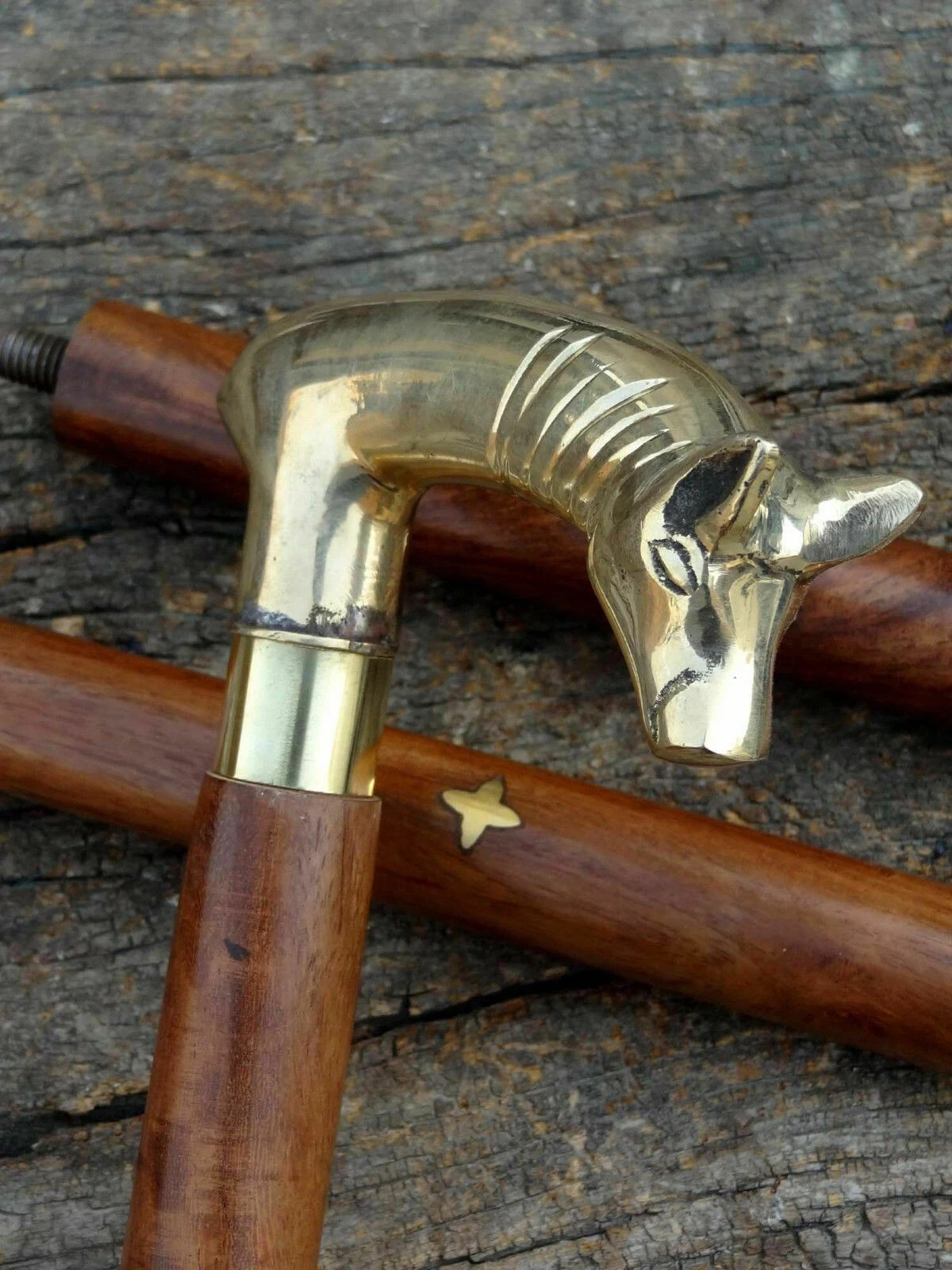 36'' Vintage Brass Handle Victorian Wooden Walking Stick Canes Antique Designer