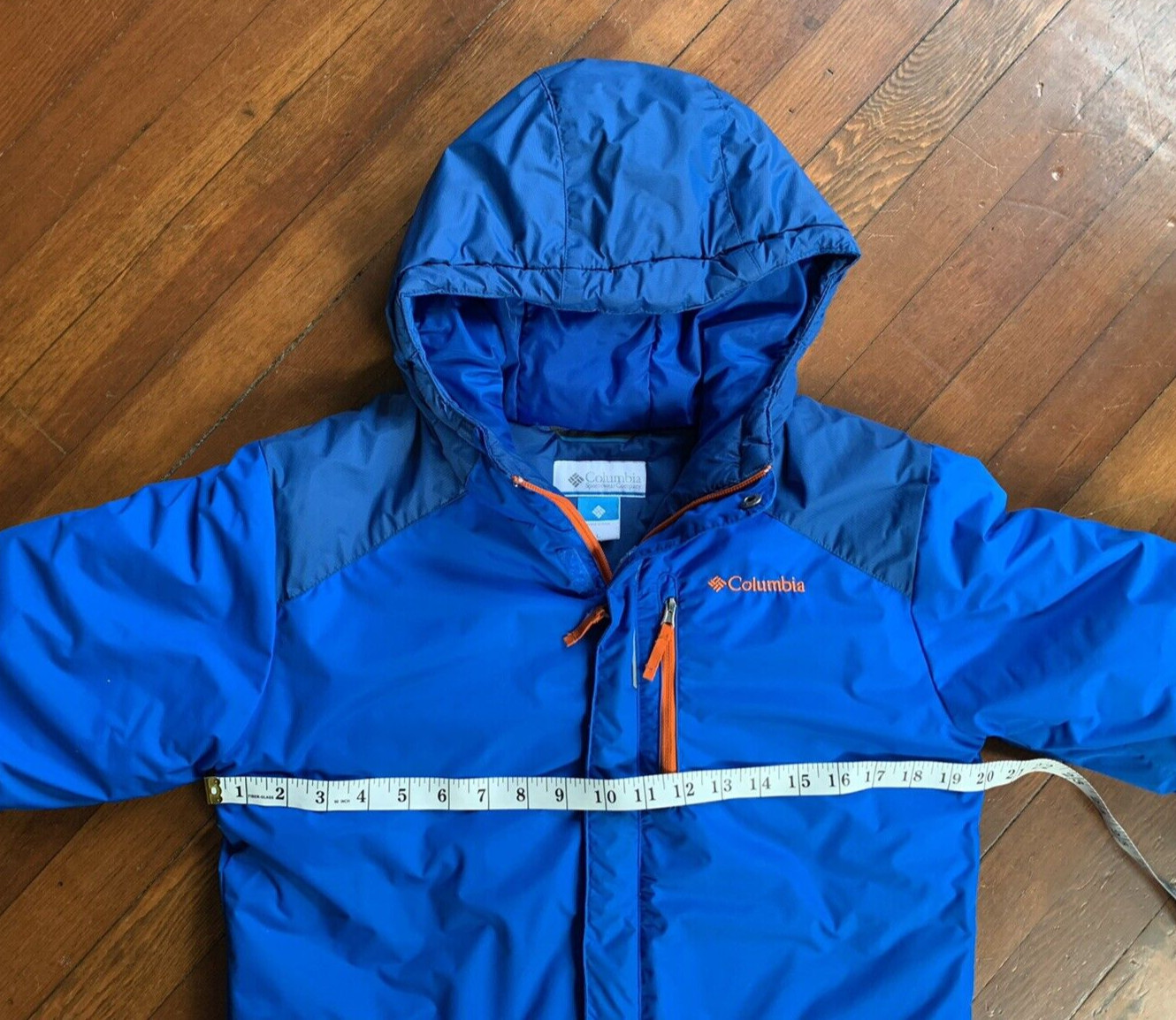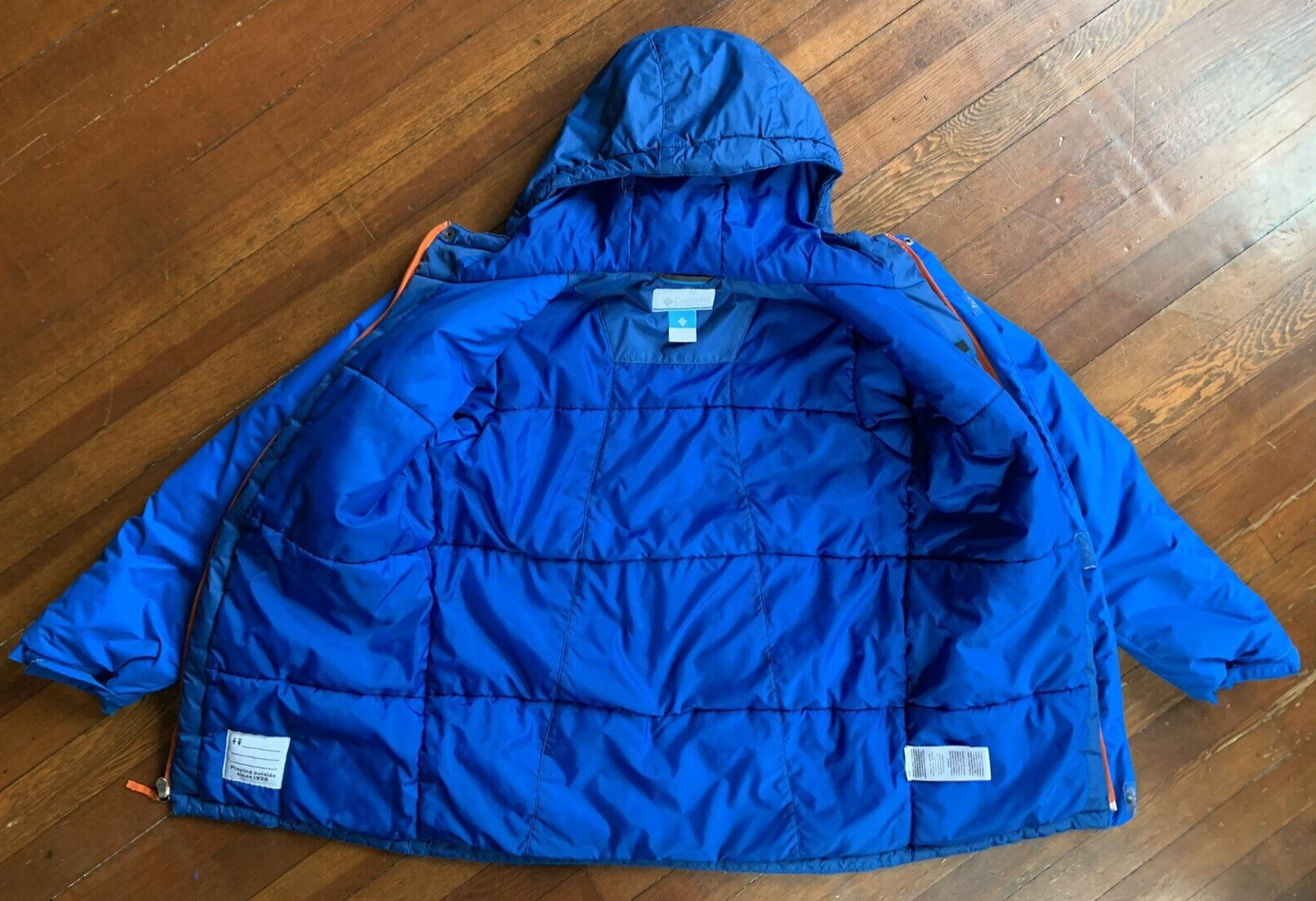 как выглядит Columbia Youth L Puffer Jacket Coat Blue Zip Pockets Winter Hike Ski Camp Warm фото