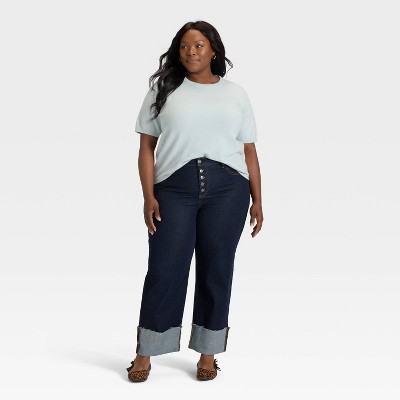 Women's High-Rise Cuffed Straight Jeans - Ava Viv