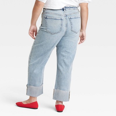 Women's High-Rise Cuffed Straight Jeans - Ava Viv